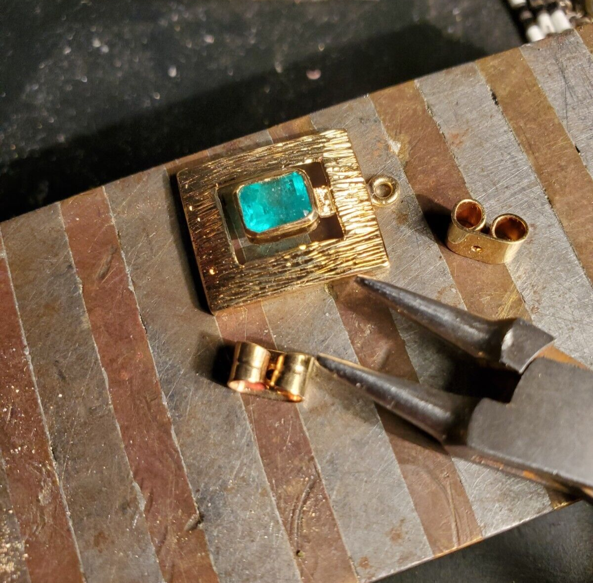 Real earth-mined real emeralds are approximately 2.17 carat total.