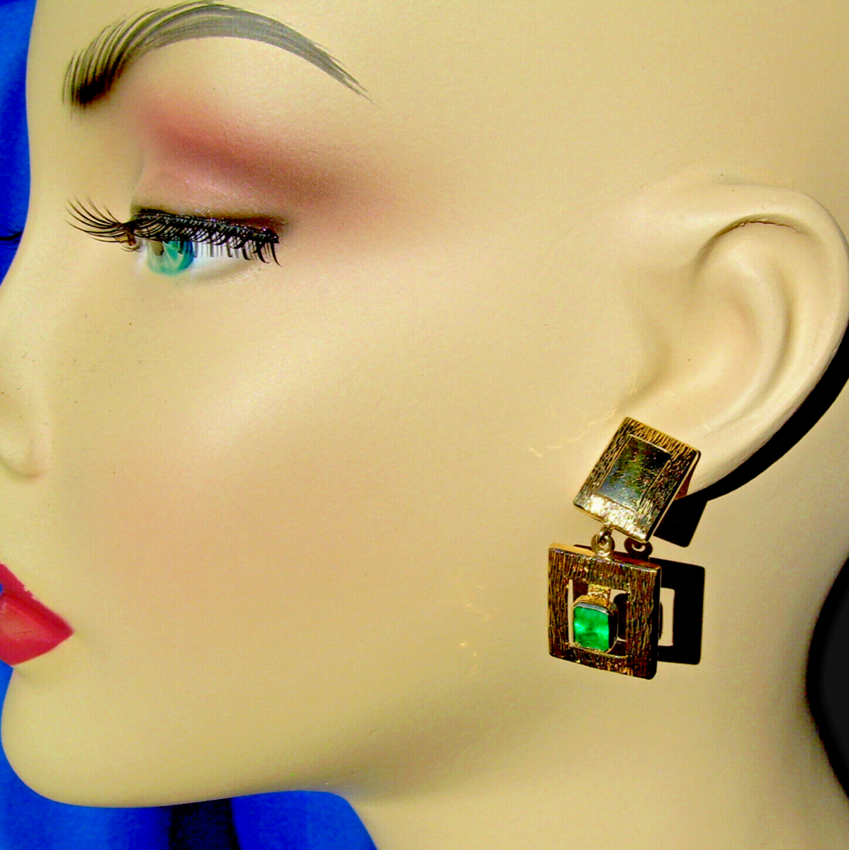 EXOTIC DECO DESIGNER ORIGINAL EMERALD DANGLES.