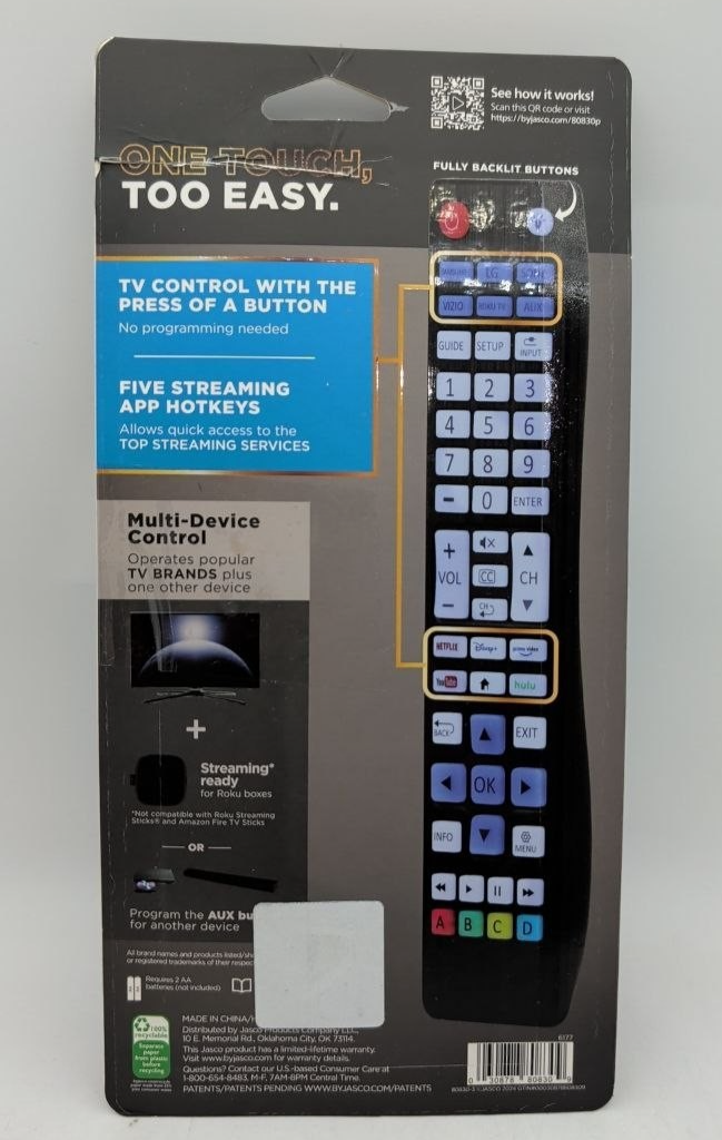 GE UltraPro Backlit OneTouch Universal Remote Control For Samsung LG Sony Vizio
