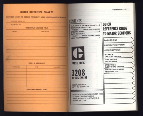 CATERPILLAR TRUCK ENGINE 3208 vin 32Y1-32Y68440 * SEBP 1237 Parts Manual