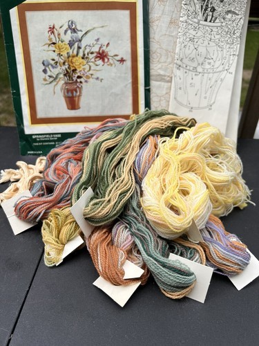 Vintage Elsa Williams Springfield Vase Creative Crewel Work Kit 27"x 27"