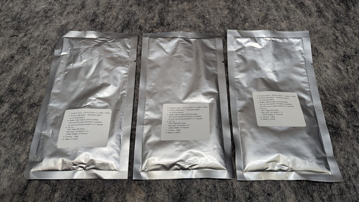 3 New Genuine HP Developer Powder Only JC96-11655A (2 Cyan, 1 Yellow)