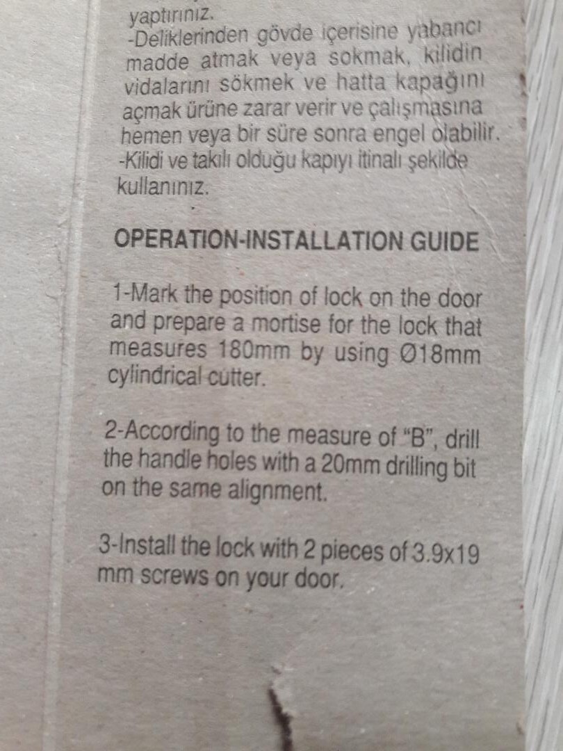 KALE KILIT 269/35 . Backset 35mm Center (Axis) 90mm Aplication: Lock for WC ,for PVC and aluminium doors