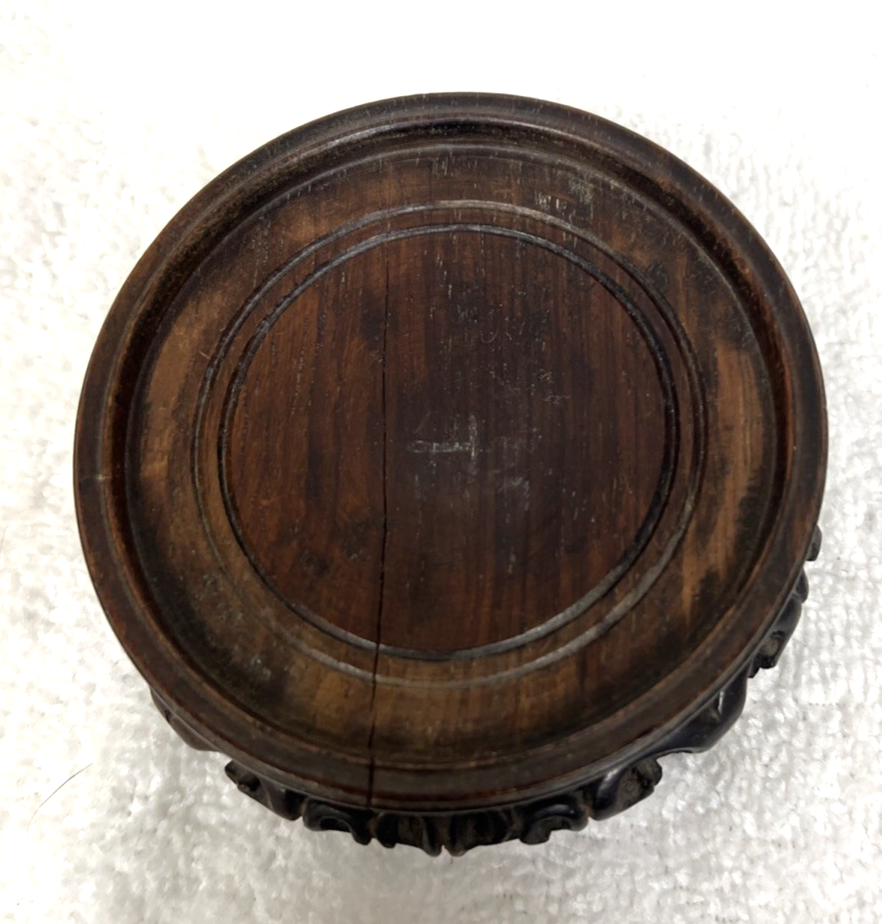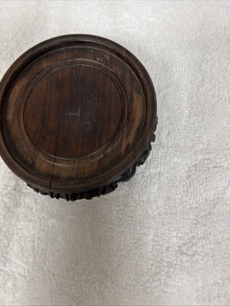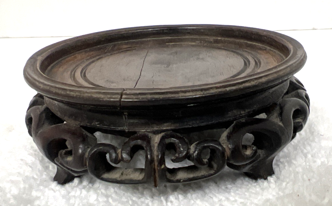 Antique Vintage Chinese 4 Feet Carved Dark Wood Vase Statue Bowl Stand 5 3/4"