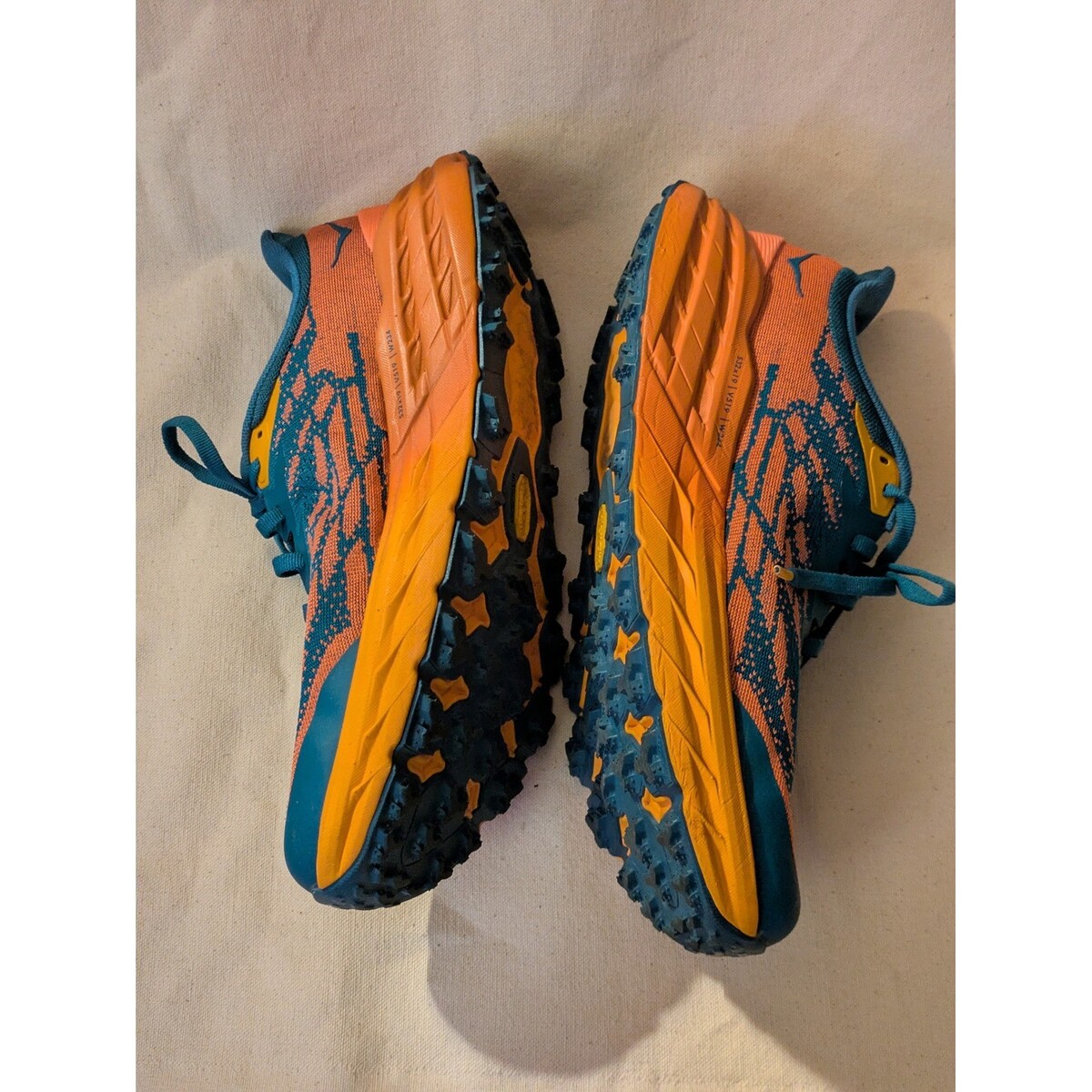 Keywords: Hoka One One, Speedgoat 5, Trail Running Shoes, Womens Running Shoes, Athletic Shoes, Outdoor Footwear, Hiking Shoes, Long Distance Running, Performance Shoes, Vibram Sole, Teal Orange Shoes, Breathable Sneakers, Lightweight Running