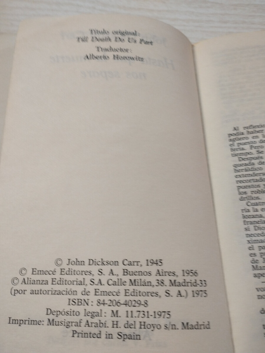 que Death Do Us Part John Dickson Carr 1975 Emece - Spanish BOOK