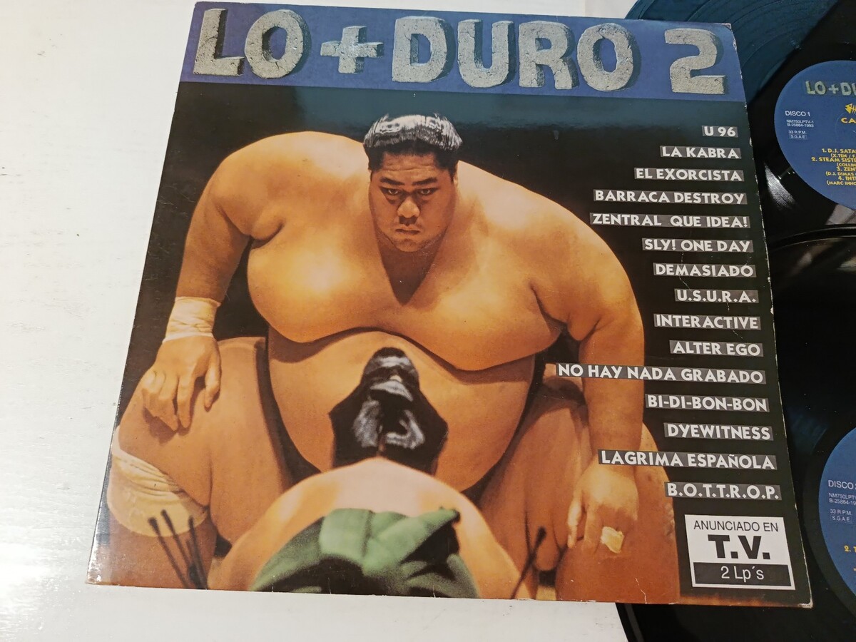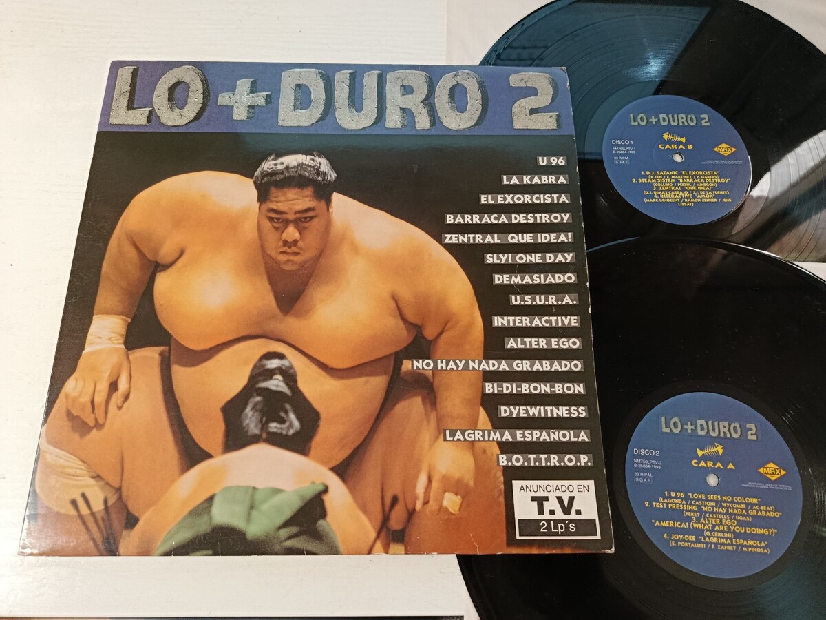 Edition originale espagnole de Lo + Duro 2, compilation cle del sonido bakalaode debutdelos 90,con themes emblematiquesde Zentral, DJ Hooligan et autres referencesde la musique de danse de l'epoque. Presente sur doble vinile 12",con etui d'origine etsonido caracteristique puissantede Musique maximale.
