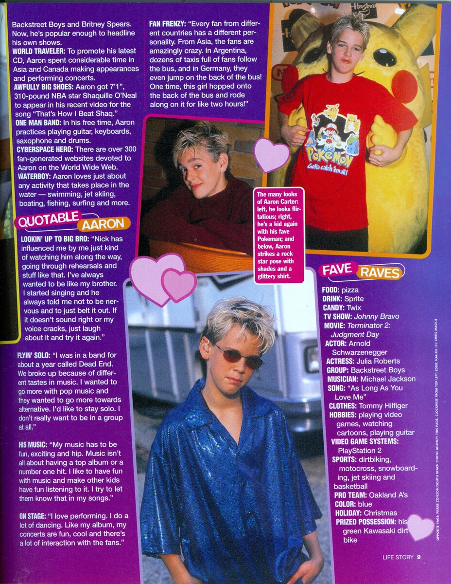 Aaron Carter - singer - 11" x 8" Teen Magazine Pinup Mini Poster Clipping 34