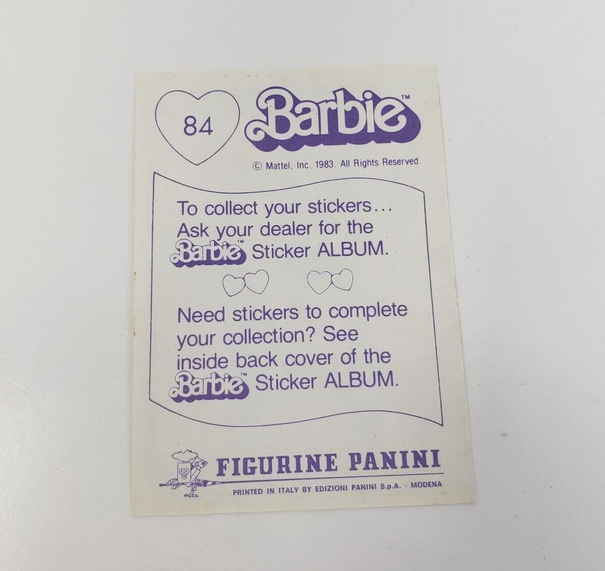 VINTAGE 1983 MATTEL FIGURINE PANINI BARBIE ALBUM STICKER NOS NEW OLD STOCK # 84