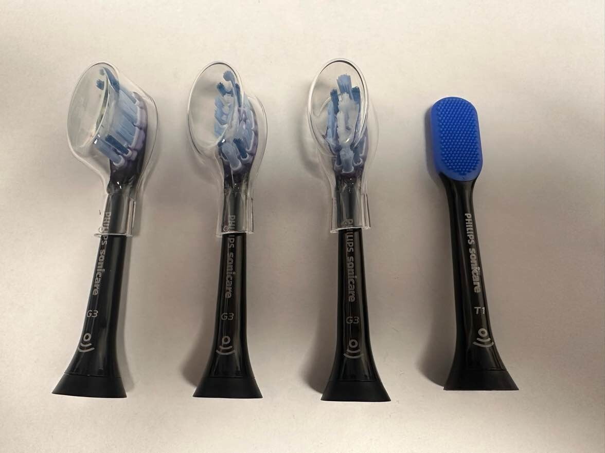 3-PHILIPS SONICARE DIAMOND CLEAN G3 REPLACEMENT HEADS & 1 TONGUE CLEANER T1 NEW