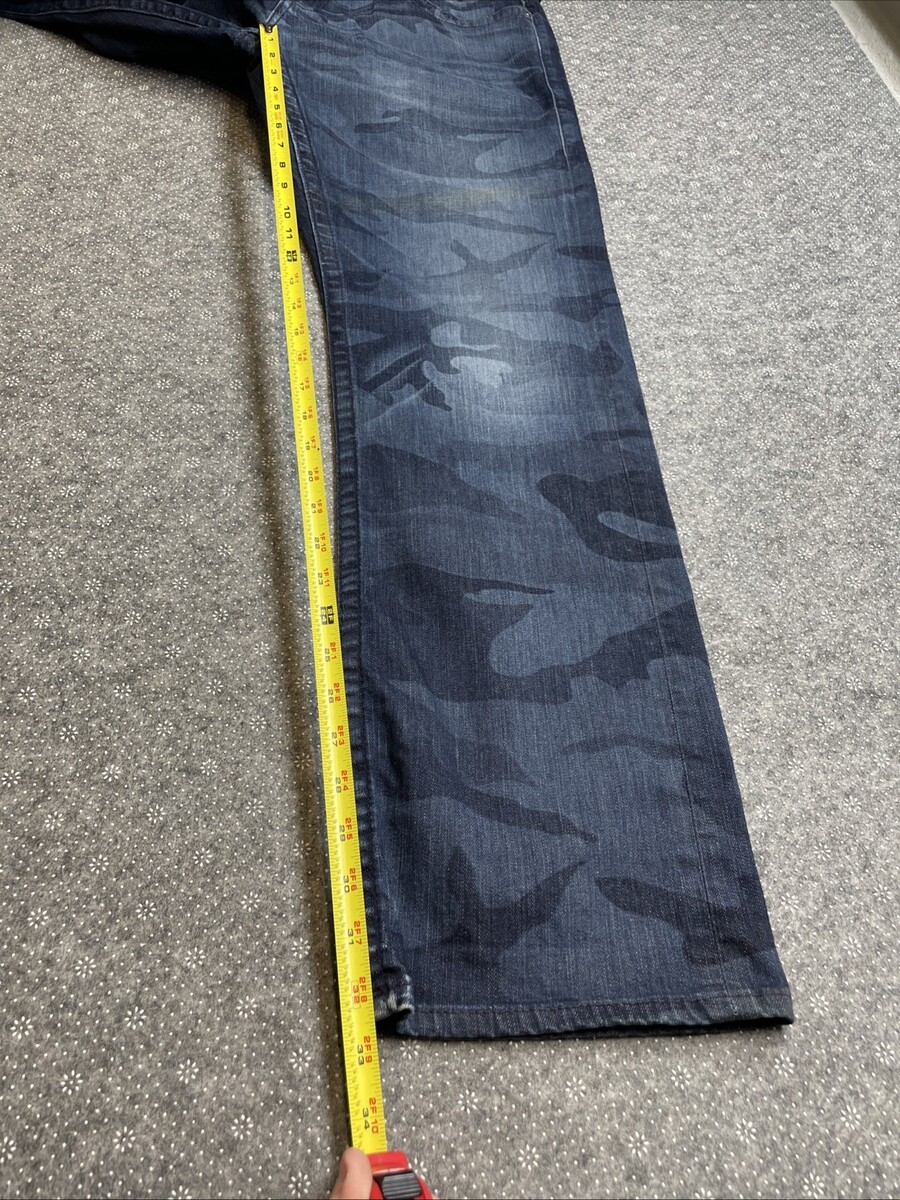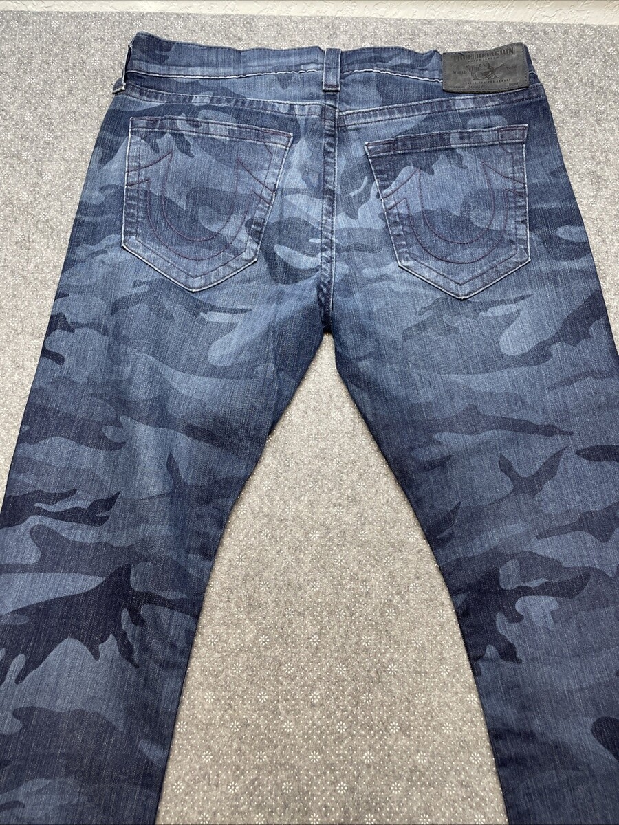 True Religion Bobby Baggy Blue Camo Denim Jeans Men's Size 38X32 KG JD