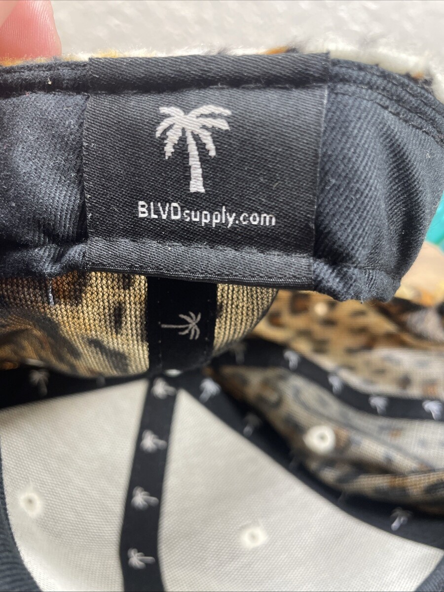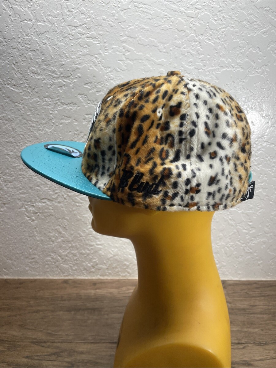 BLVD Supply Leopard Print Snapback Hat Cap Teal Brim PU Palm Tree Fur KG JD