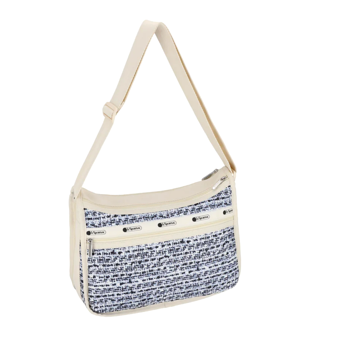 LeSportsac Weave Black Deluxe Everyday Crossbody Bag Modern Abstract Weave Print