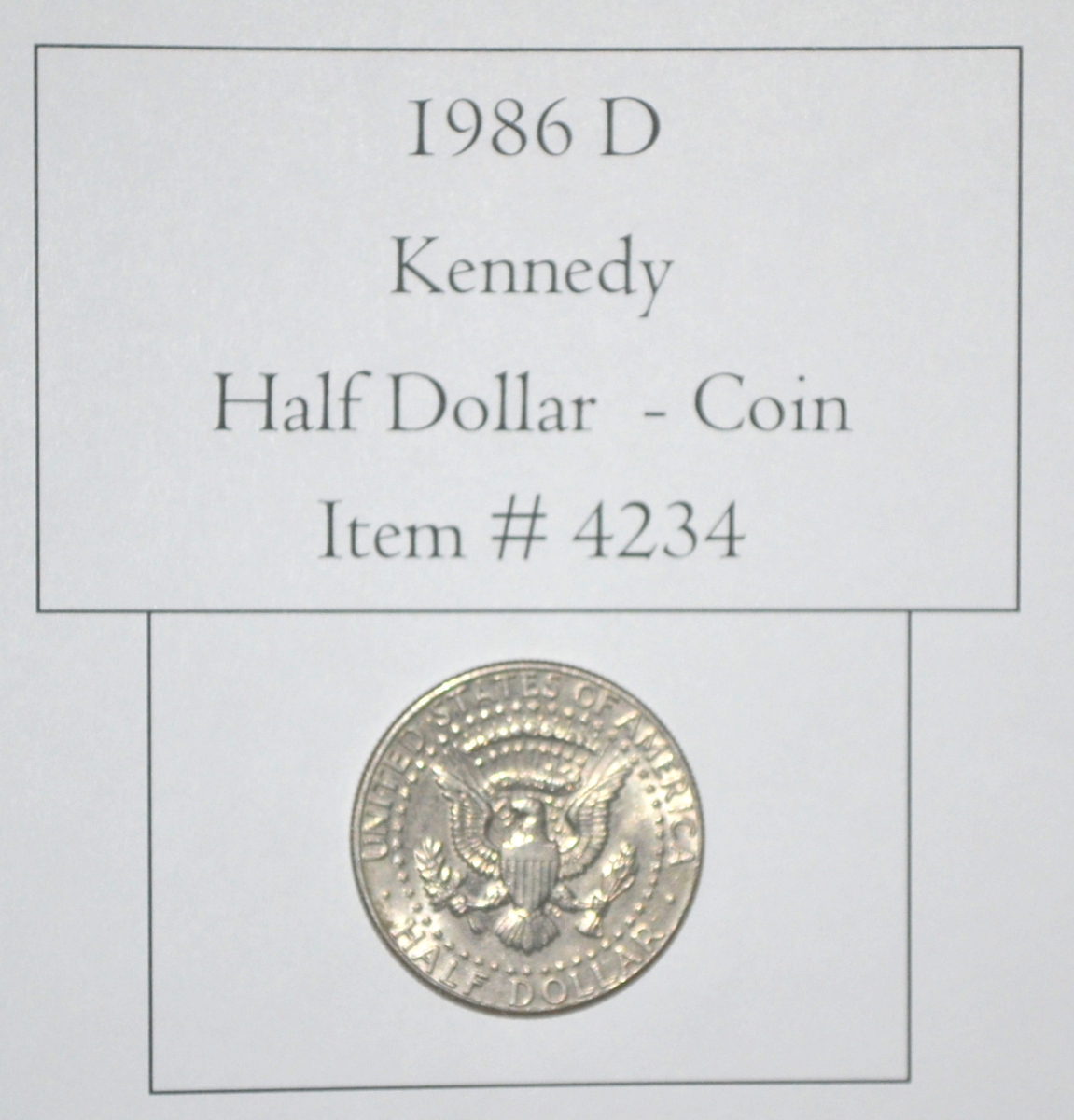 1986 D, Kennedy Half Dollar, # 4234, half dollar coin, vintage coins, rare coins