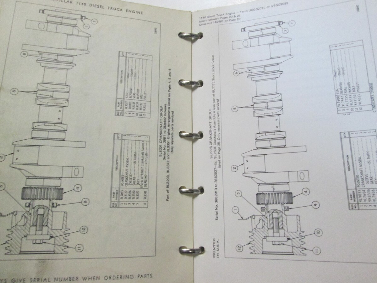 Caterpillar 1100 Serie Dieselmotor Lkw Teile Katalog Manuell Fabrik OEM