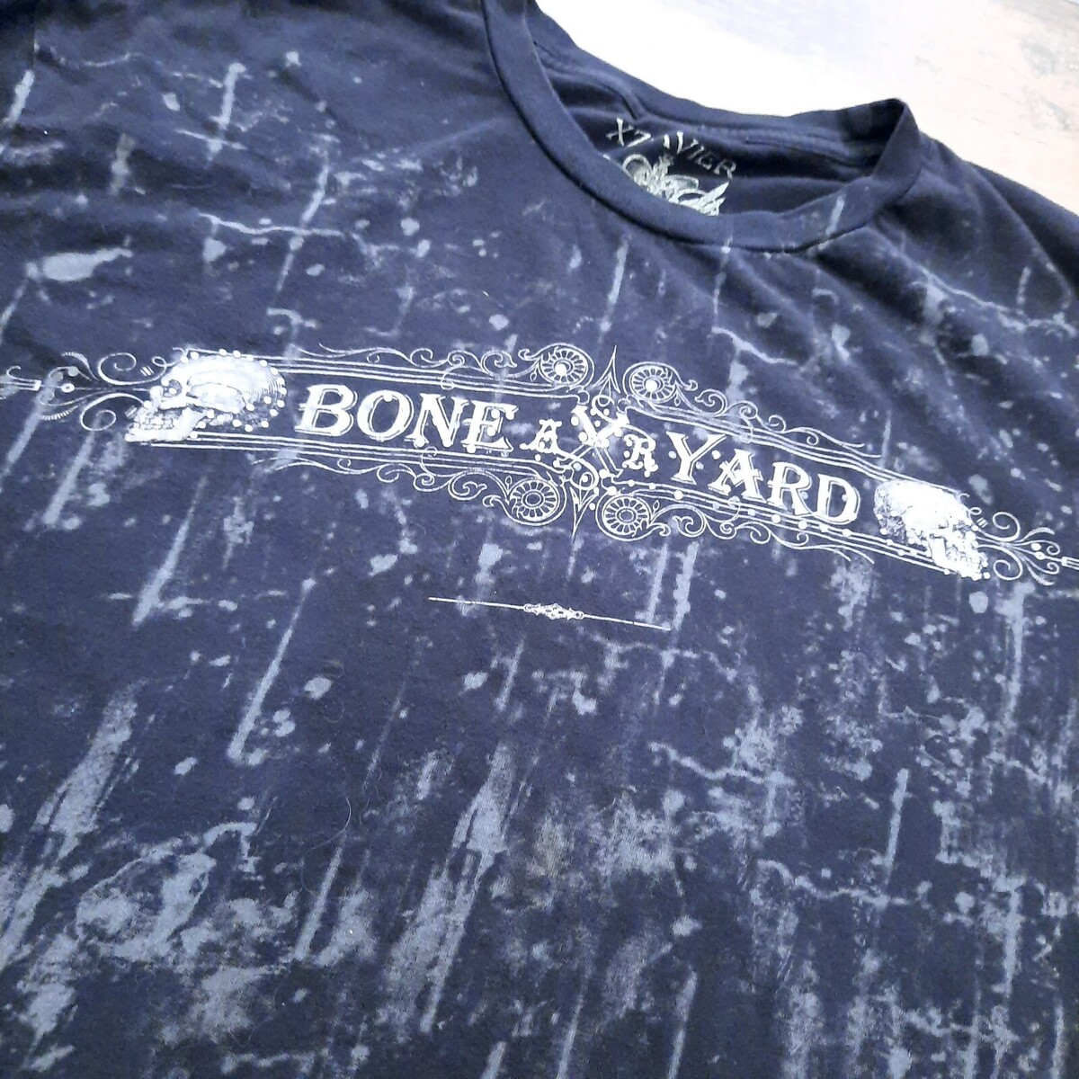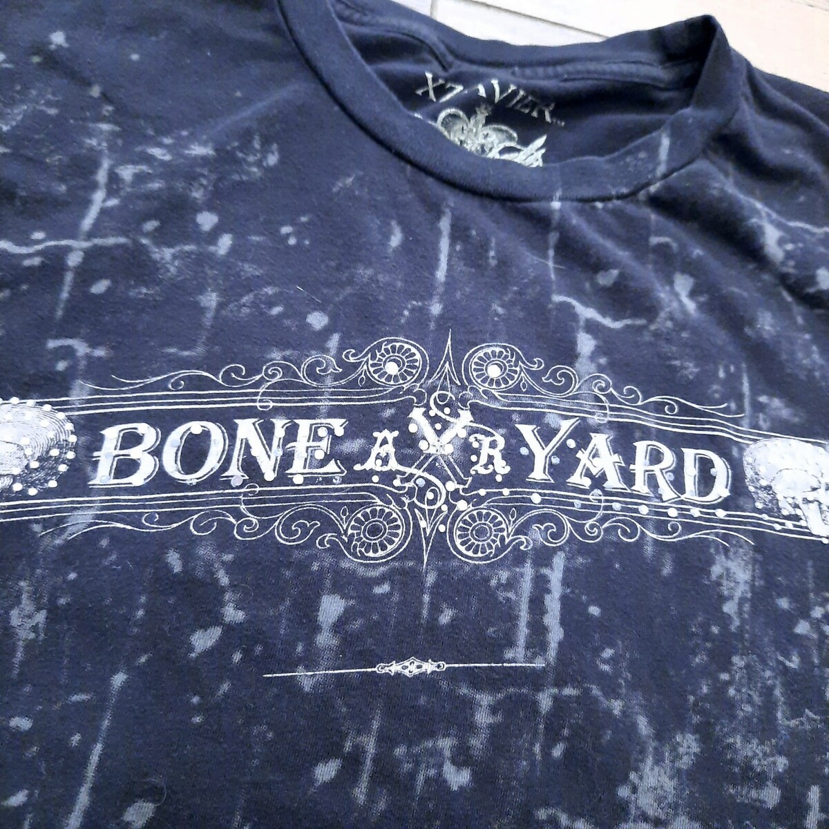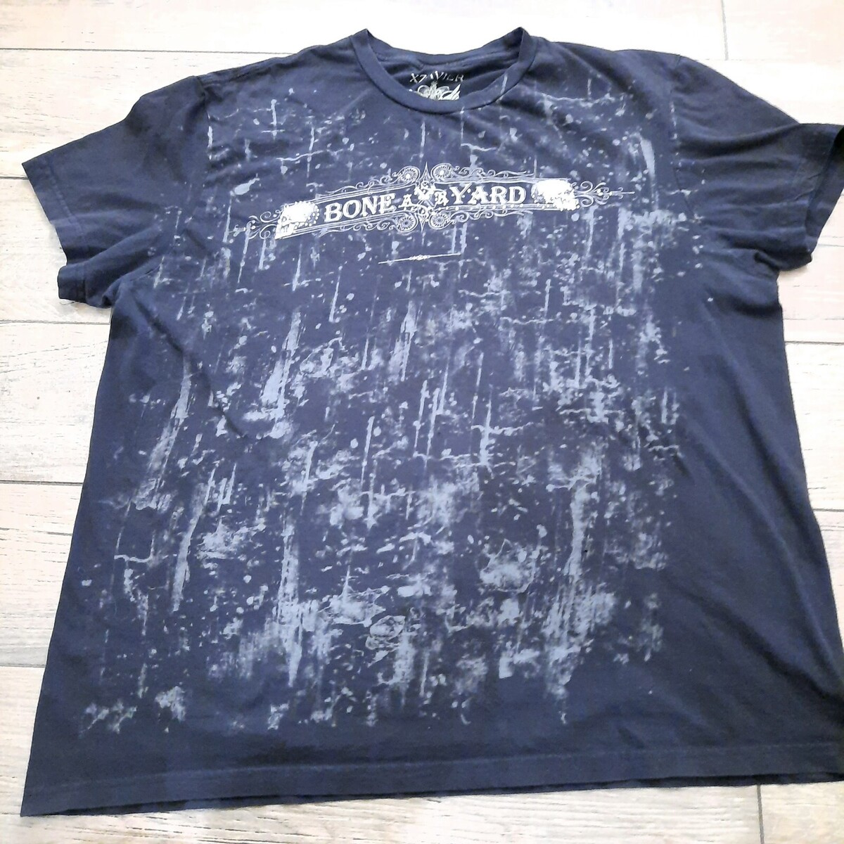 Xzavier men's XL Bone Yard shirt tshirt Skull embellished rhinestones distressed