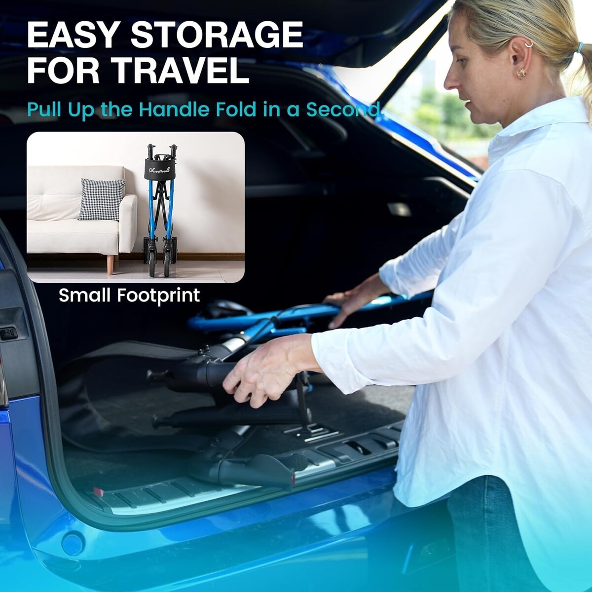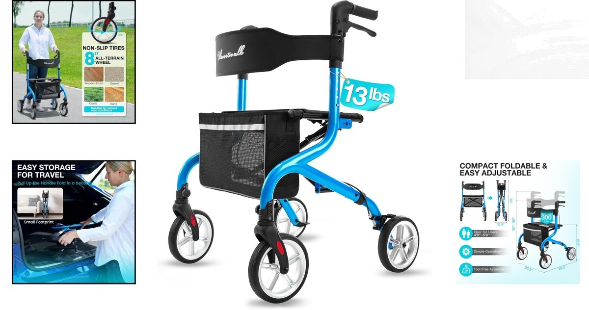 Brand New Super Lightweight Rollator: Weighing only 13 lbs, this walker eliminates the hassle of heavy, bulky walkers. Designed for daily use and travel with a modern and sturdy framework.