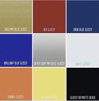 Available colors: (Glossy Black, Matte Black, Glossy Red, Glossy Yellow, Glossy Silver, Glossy Orange, Glossy Blue Glossy White)