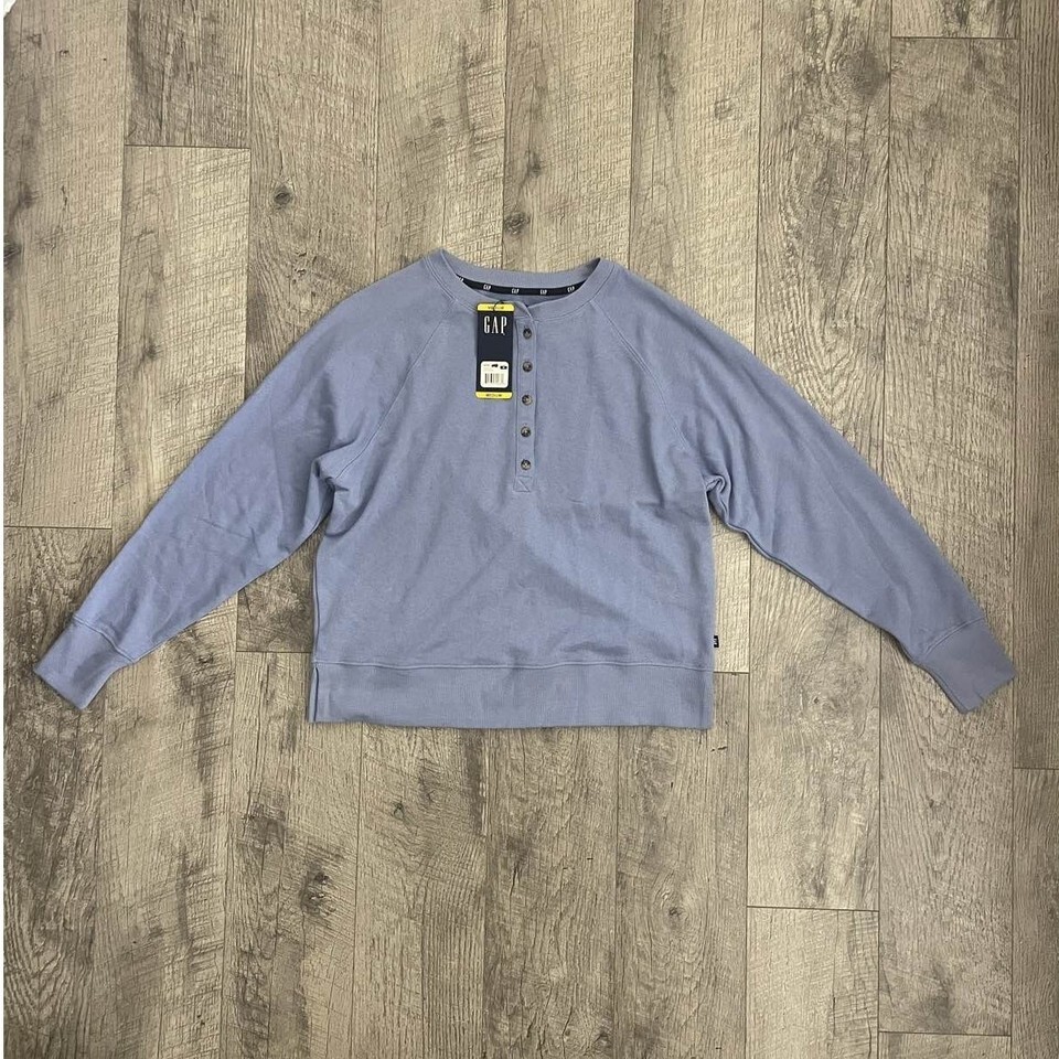 GAP Women's English Manor Blue Henley Sweatshirt M