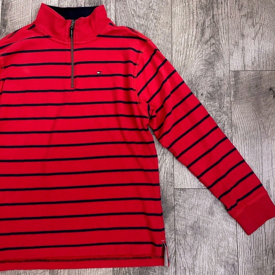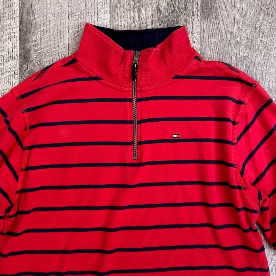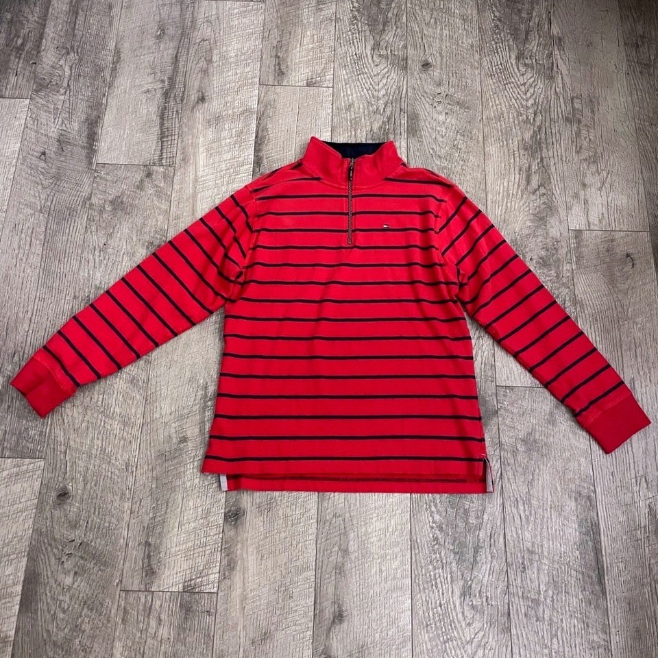 Tommy Hilfiger Kids XL 20 Red Navy Blue Striped Quarter Zip Pullover Sweater