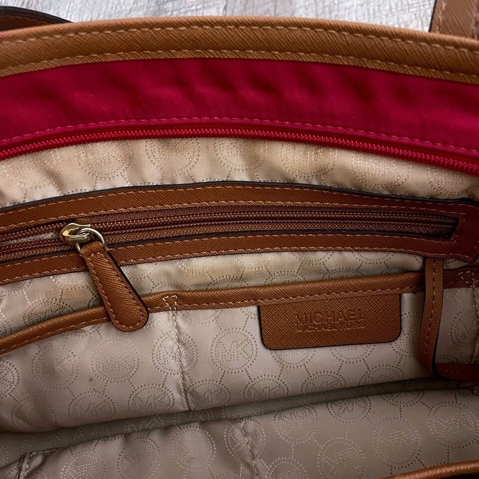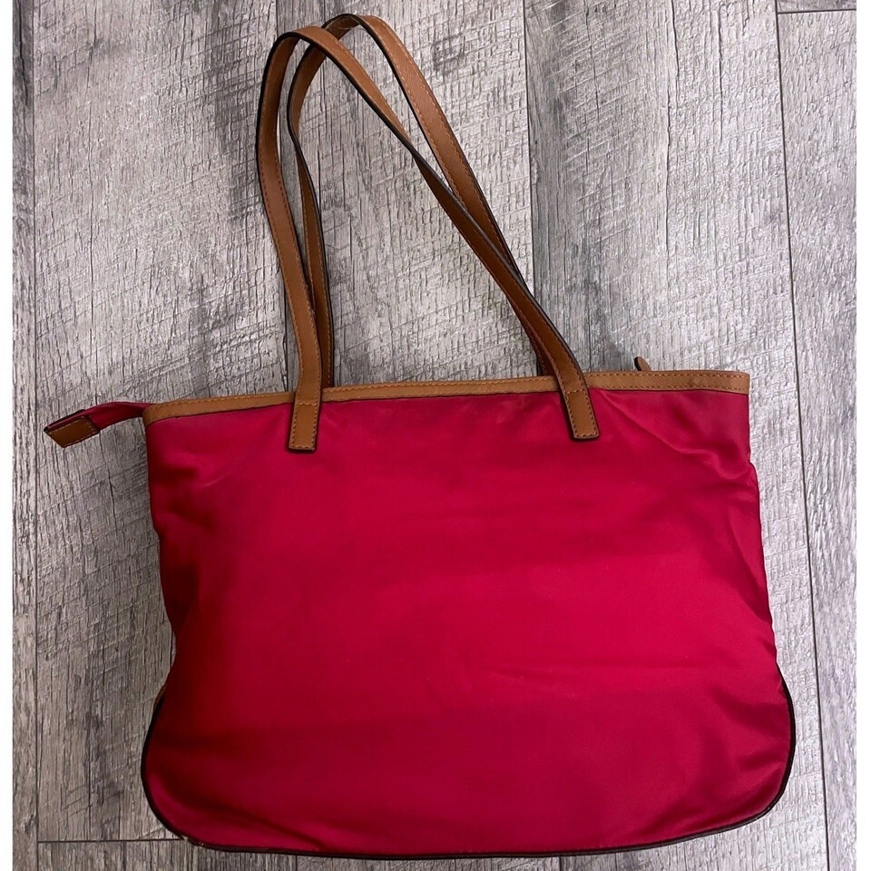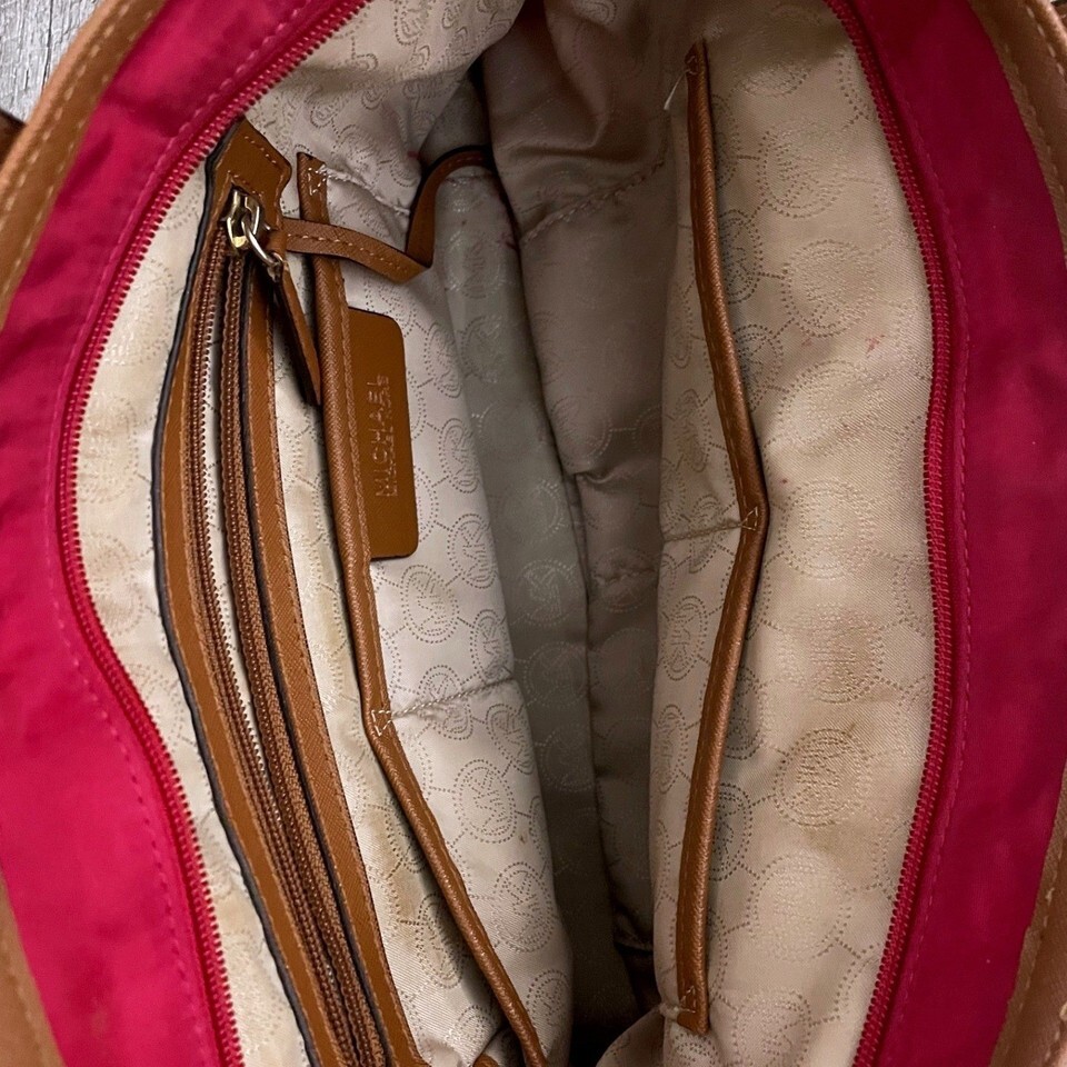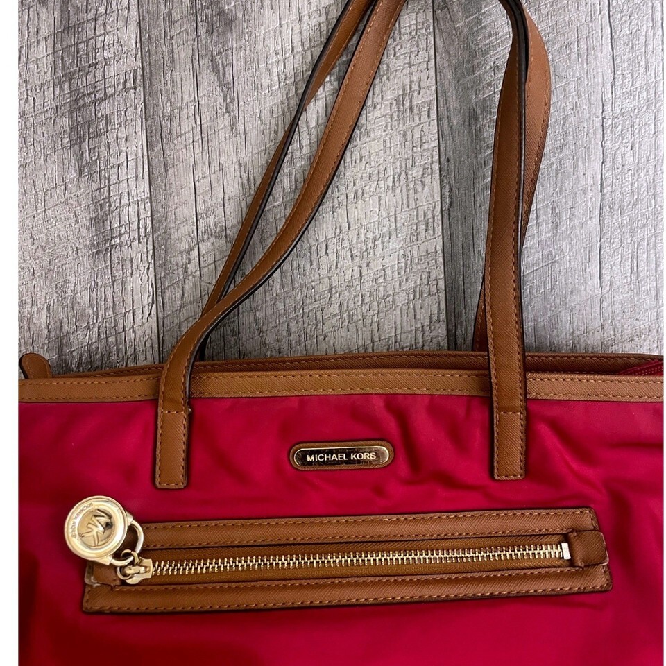 Michael Kors Pink Nylon Saffiano Leather Trim Tote Bag Gold Hardware MK Logo
