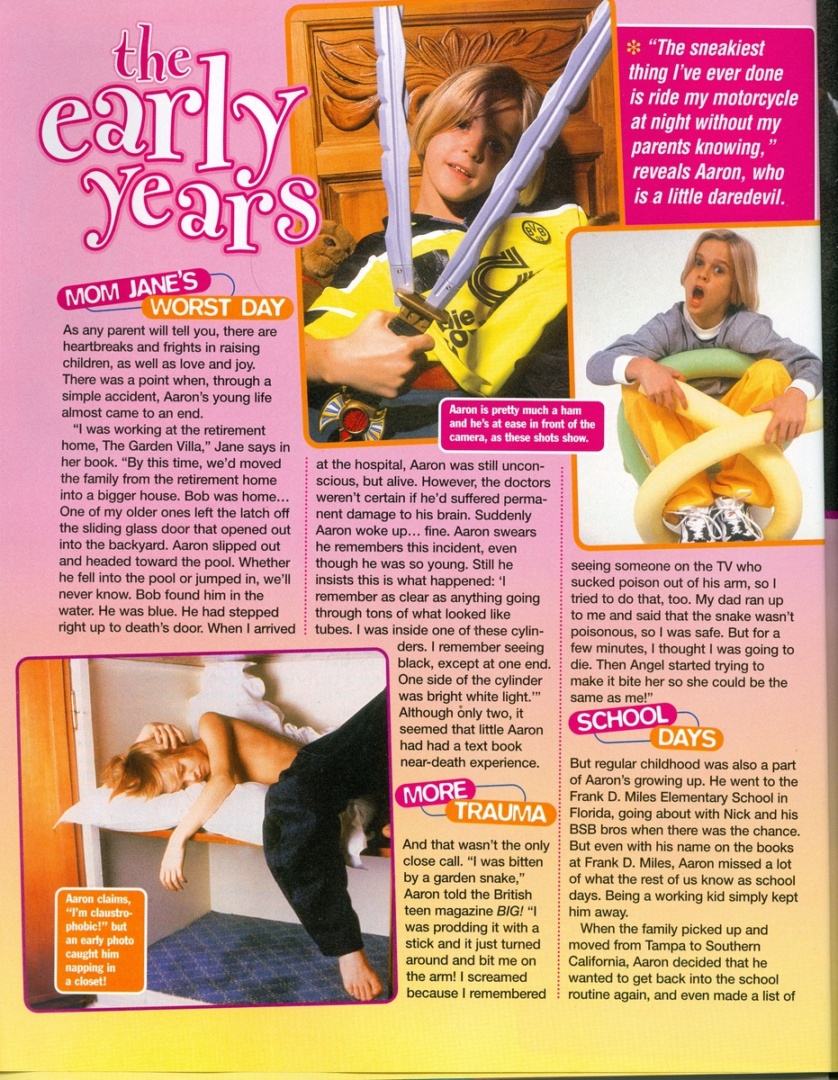 Aaron Carter Nick barefoot shirtless 11"x8" Teen Mag Pinup Mini Poster Clipping