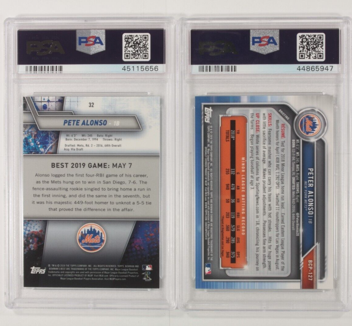 Lot de 2 cartes de baseball PSA 10 Graded 2019 Bowman's Best/Mega Box Pete Alonso