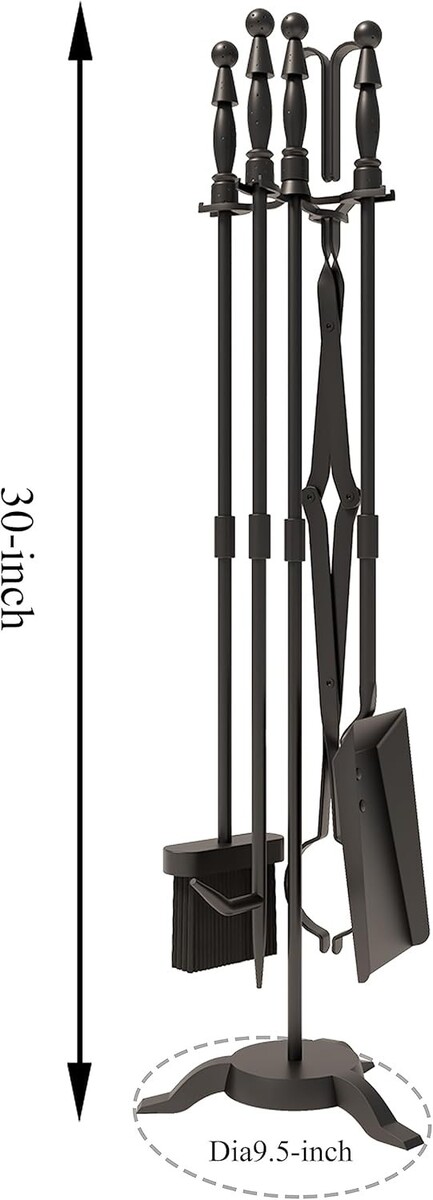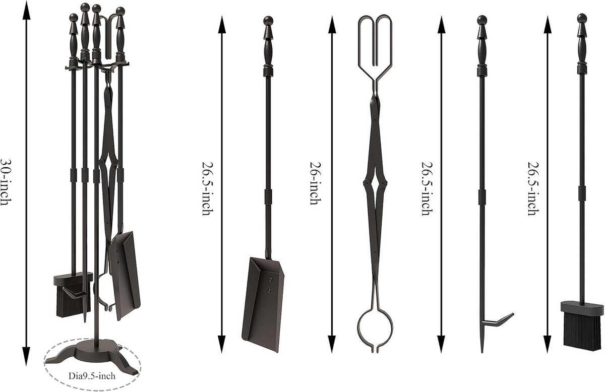 5-Piece Combination: Includes a brush, tongs, shovel, poker, and an elegant 30-inch holder.