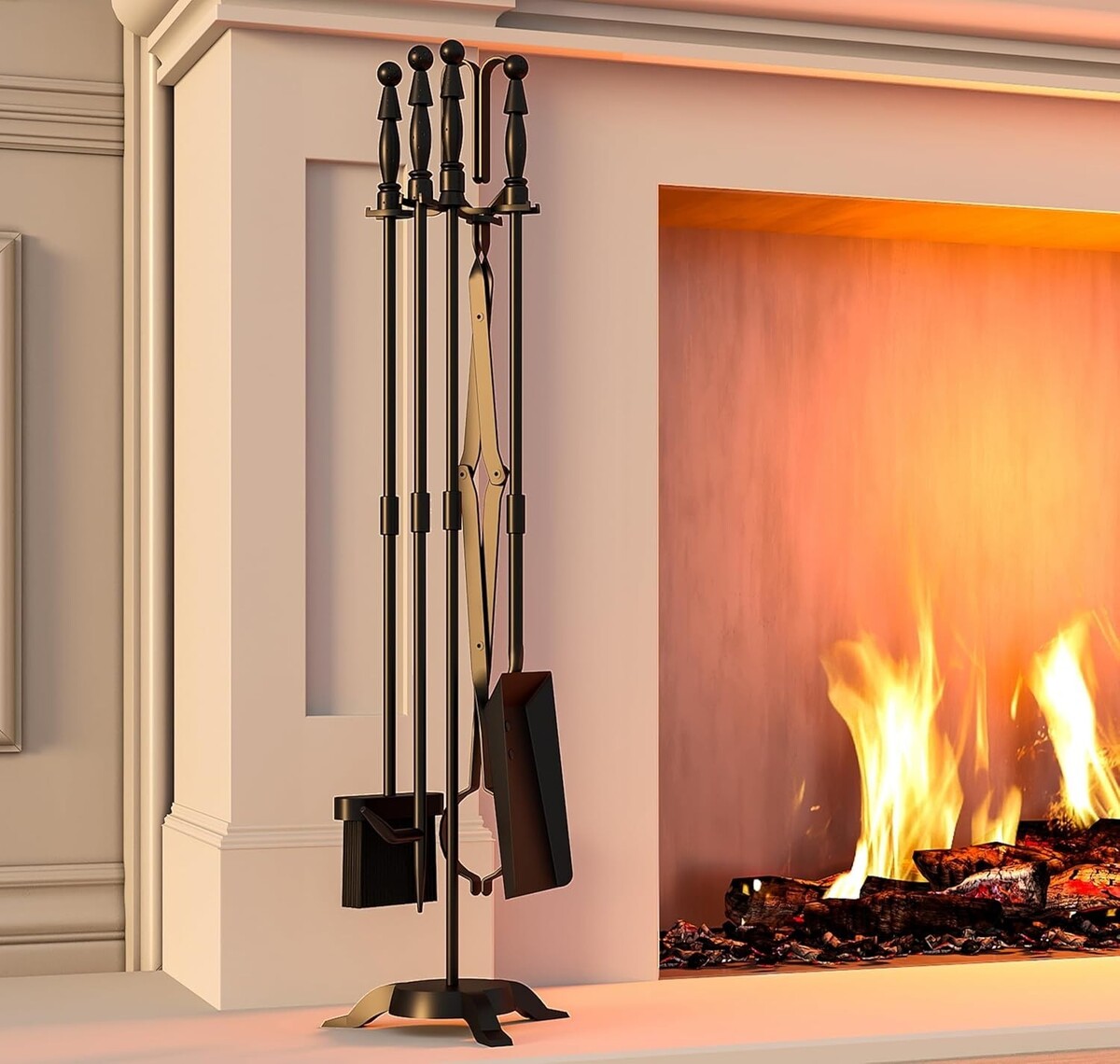 Enhance your cozy evenings with our exquisite 5-Piece Fireplace Tool Set, designed for easy assembly and stylish storage.