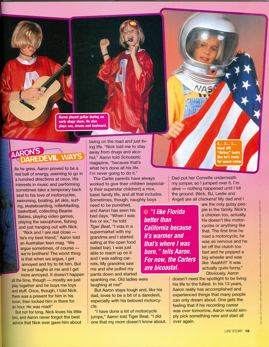 Aaron Carter - singer - 11" x 8" Teen Magazine Pinup Mini Poster Clipping 37