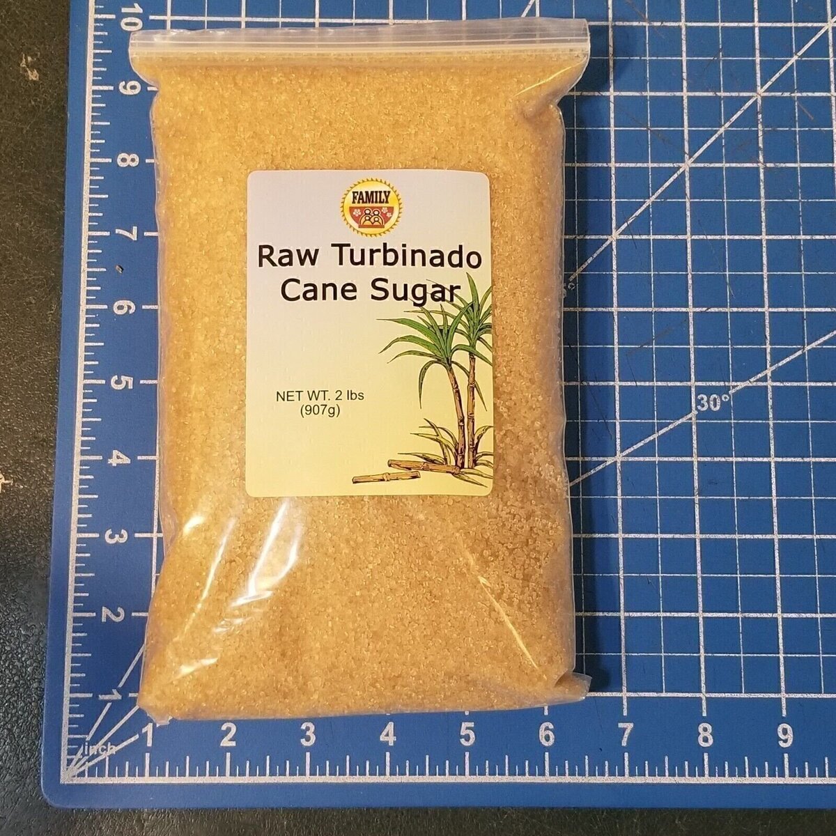 Family Food Co. Raw Turbinado Cane Sugar Gold Color 2 lbs. (907g) Pouch