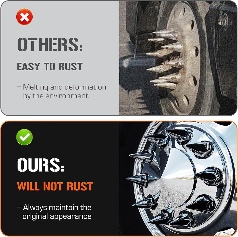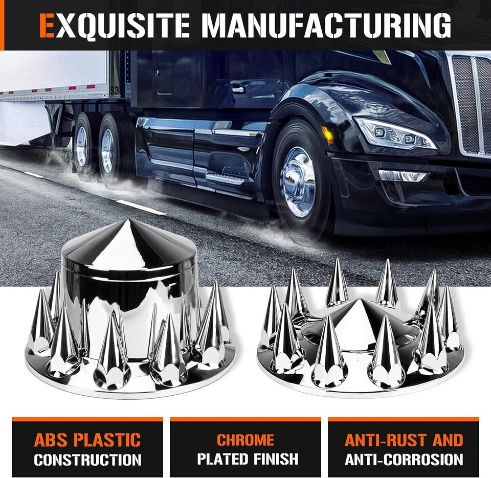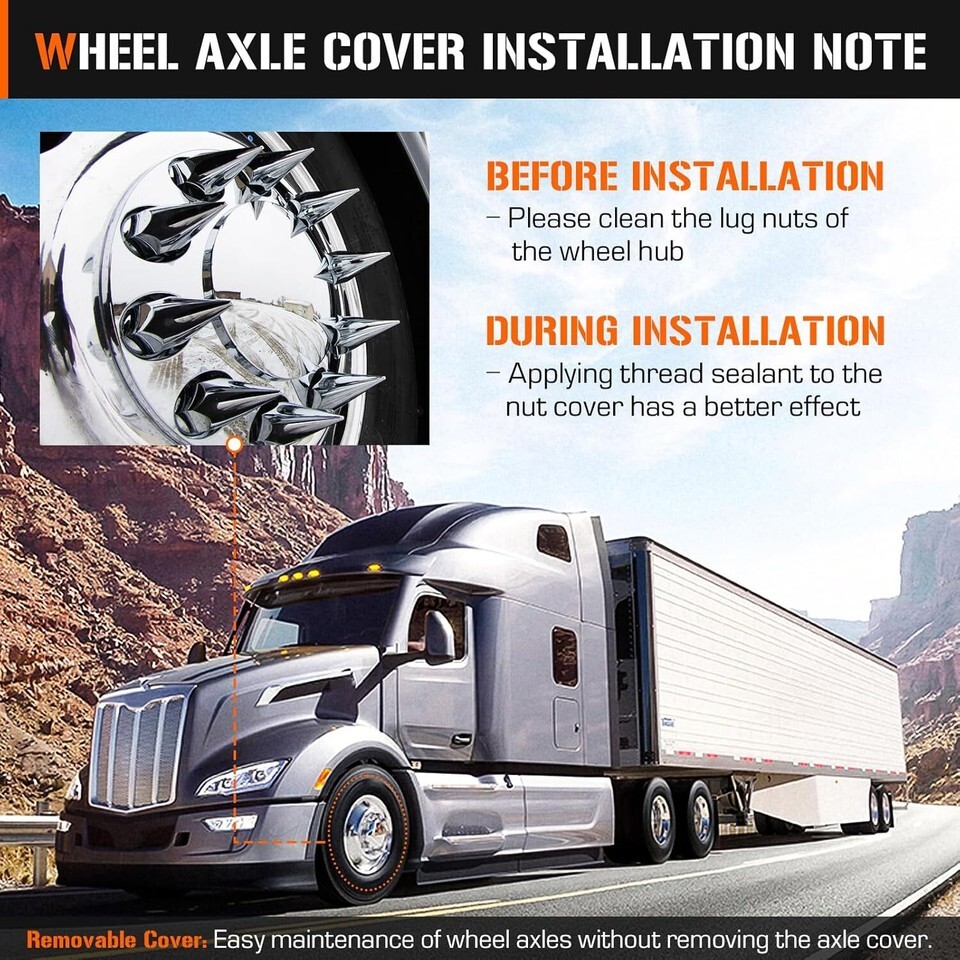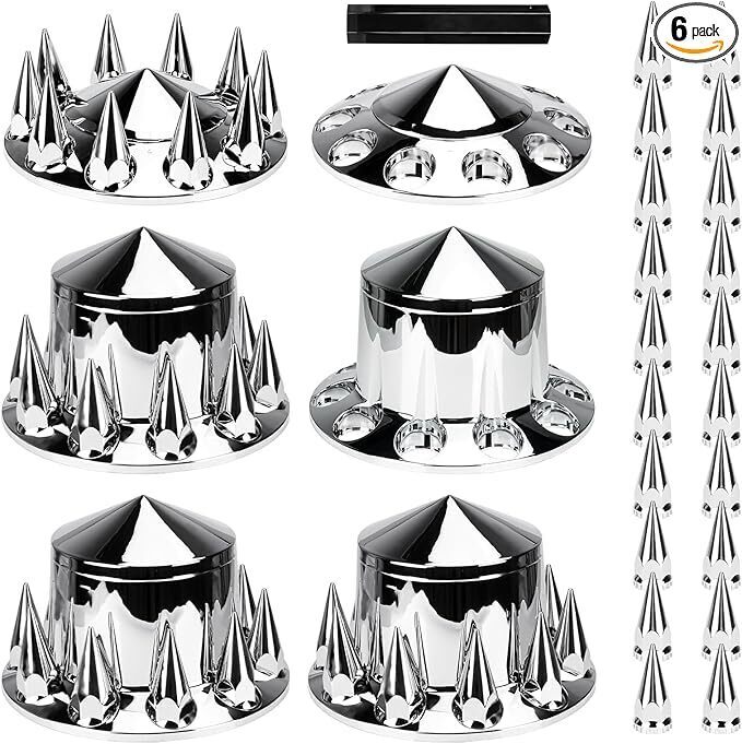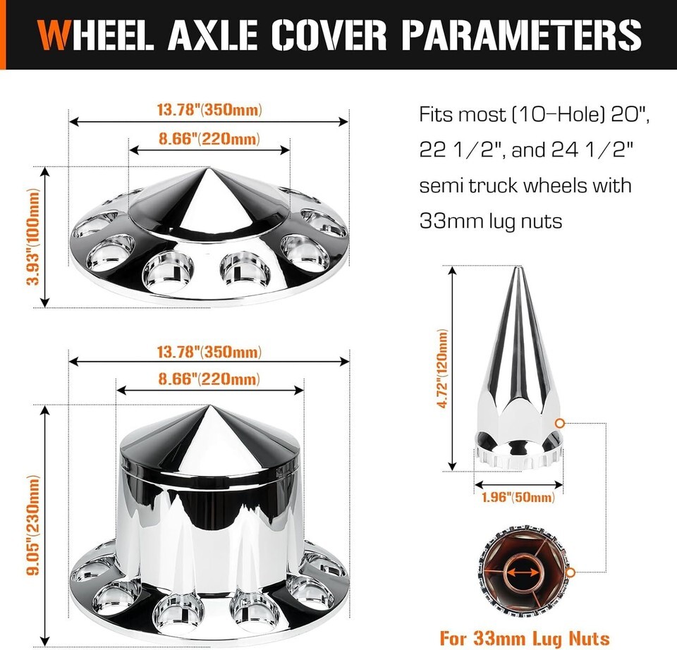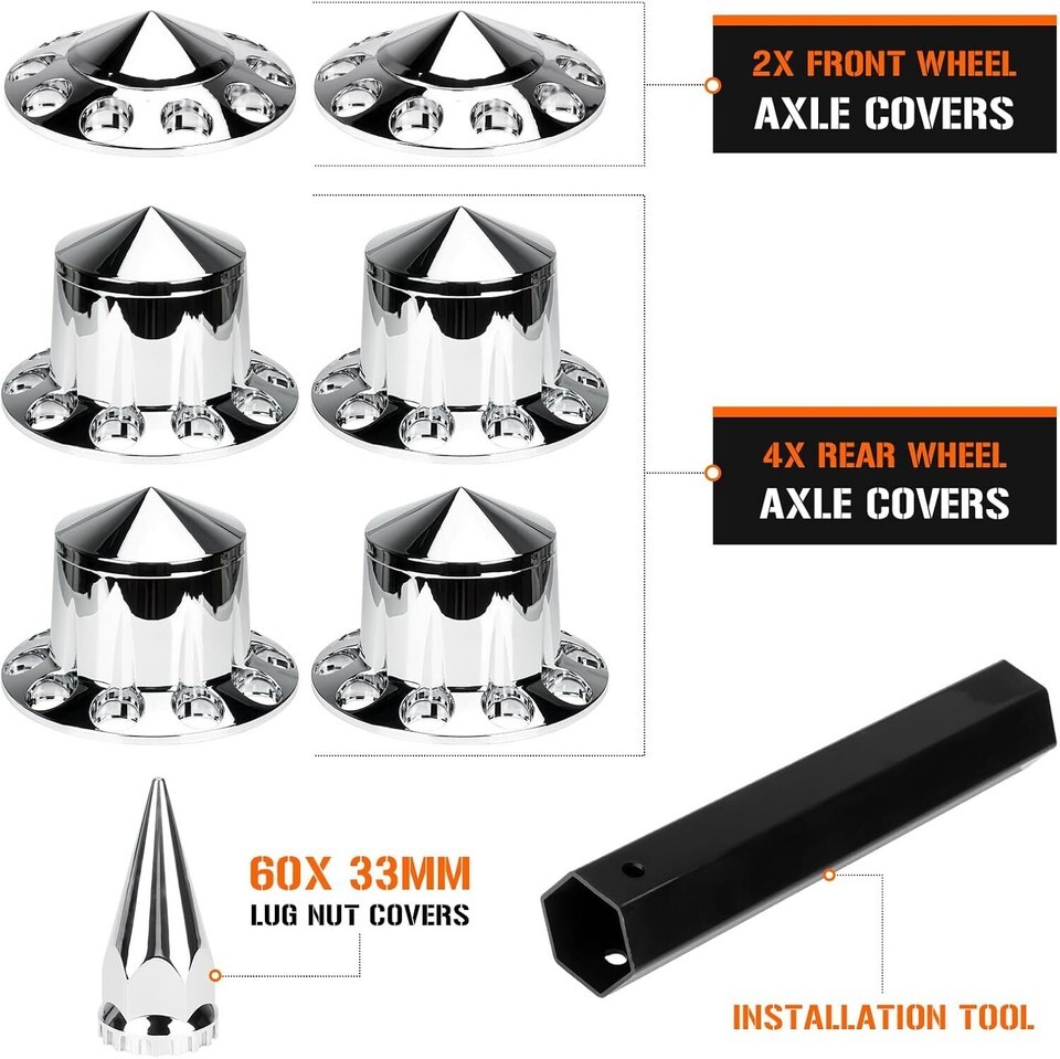Axle Cover Combo Kits for Semi Truck Hubs w/Screw-On 33mm Lug Nut, Spike ABS