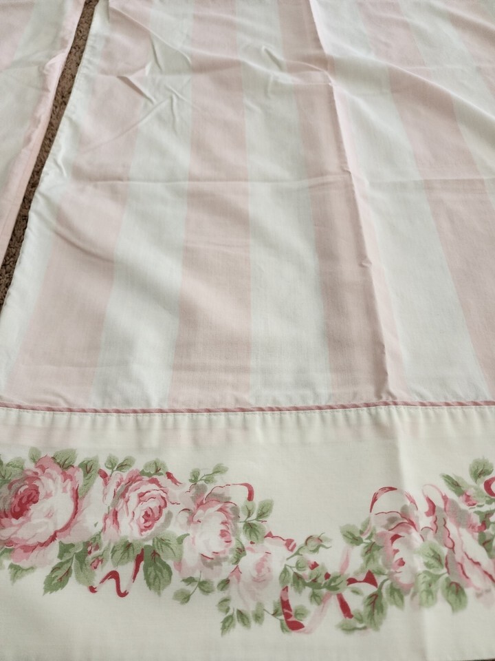 Vintage Laura Ashley Country Rose Floral King Pillowcase Pink Stripe Lot X 2