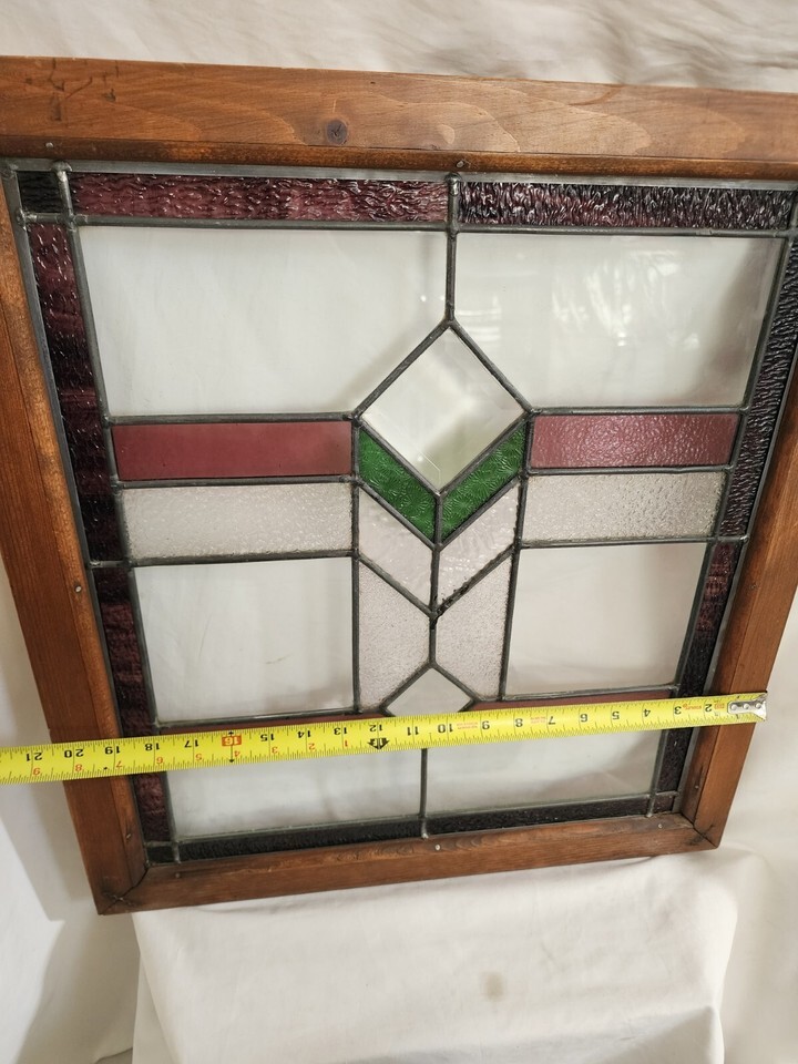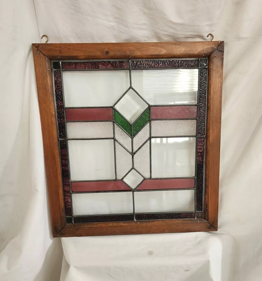 Antique Stained And Leaded Glass Geometric Framed Window Panel 21"x 23"