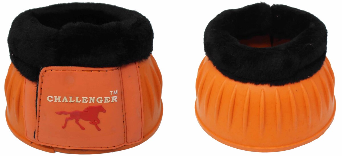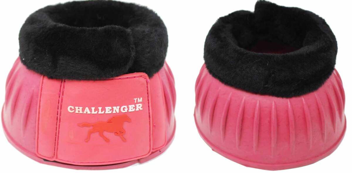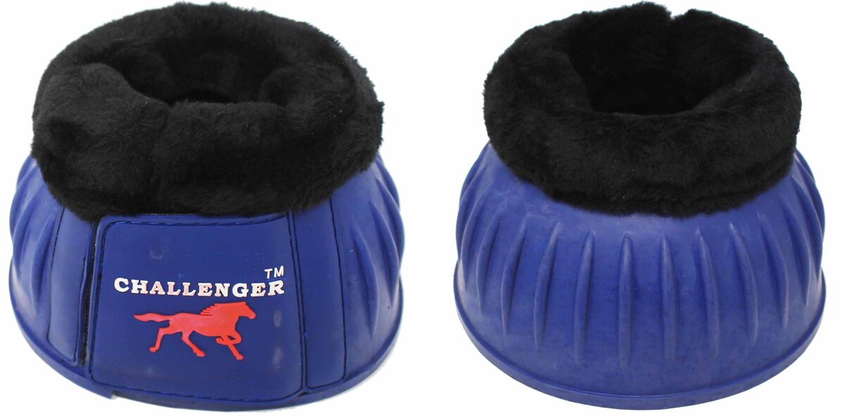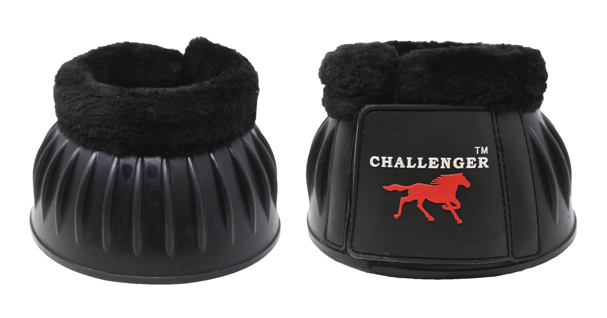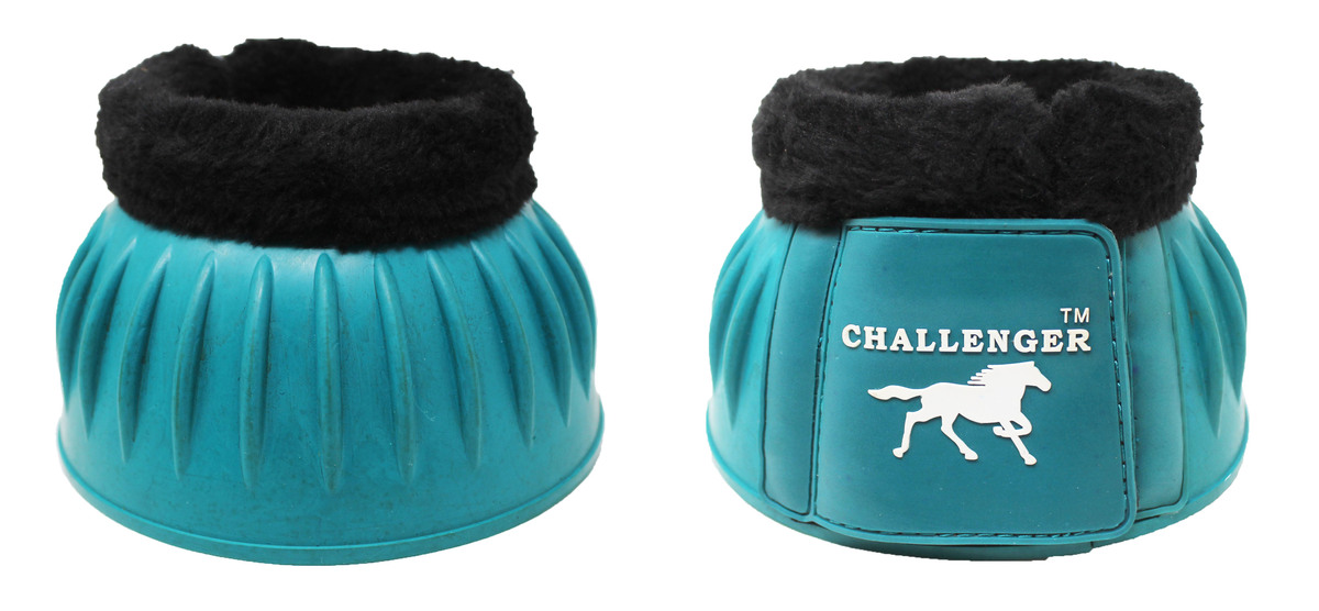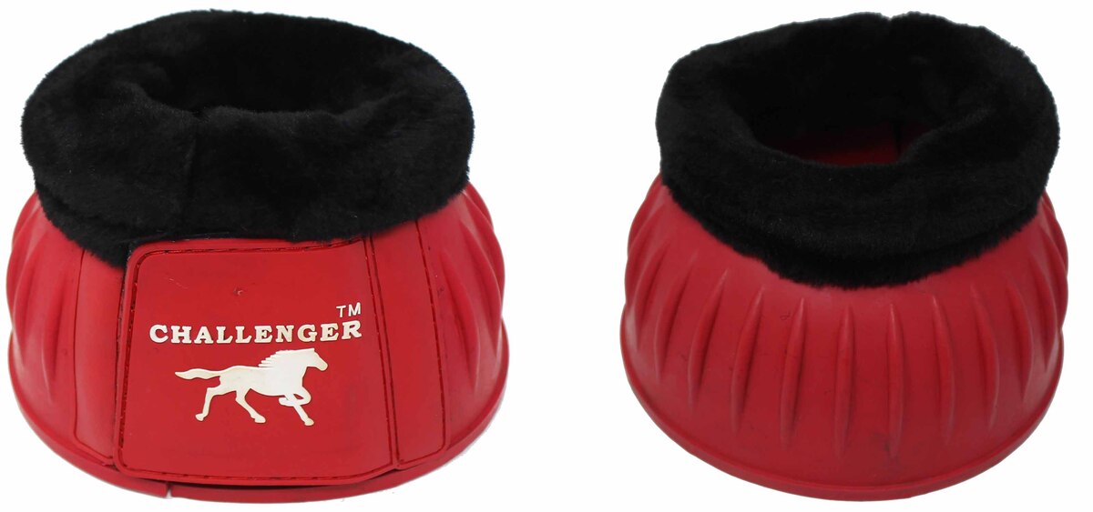 Challenger horse ribbed bell boots made from premium natural rubber. Fleece lining comfort to prevent chafing, and rubbing. These easy to clean durable boots are made to withstand weather, and everyday abuse. The tough ribbed pattern provides shock absorp