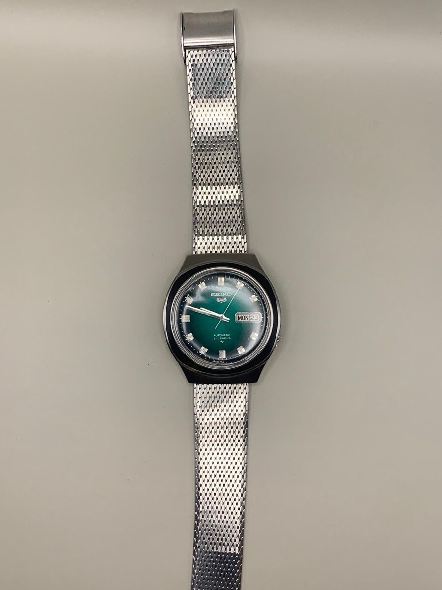 Vintage Seiko 5 Mechanical 21 Jewels 7019-8090 Day Date Green Dial Japan 1970s