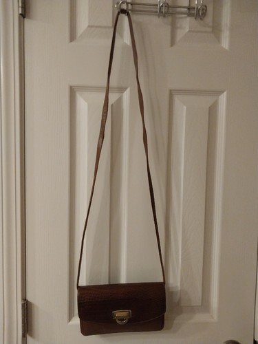 Cross Body or Shoulder Small Purse for Credit Cards, Cash And Hold Your Phone. Strap can be tied for shoulder strap use. The clasp is a little discolored but works fine. It's not too noticeable, I just wanted to be upfront with it. The strap is 54" long and the width across the bottom is 2" across.