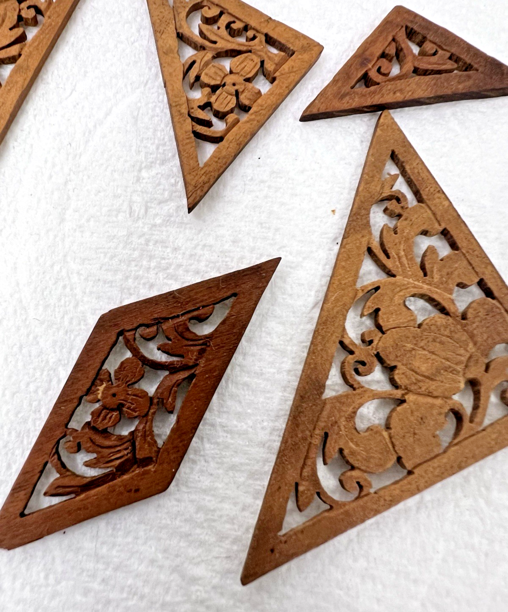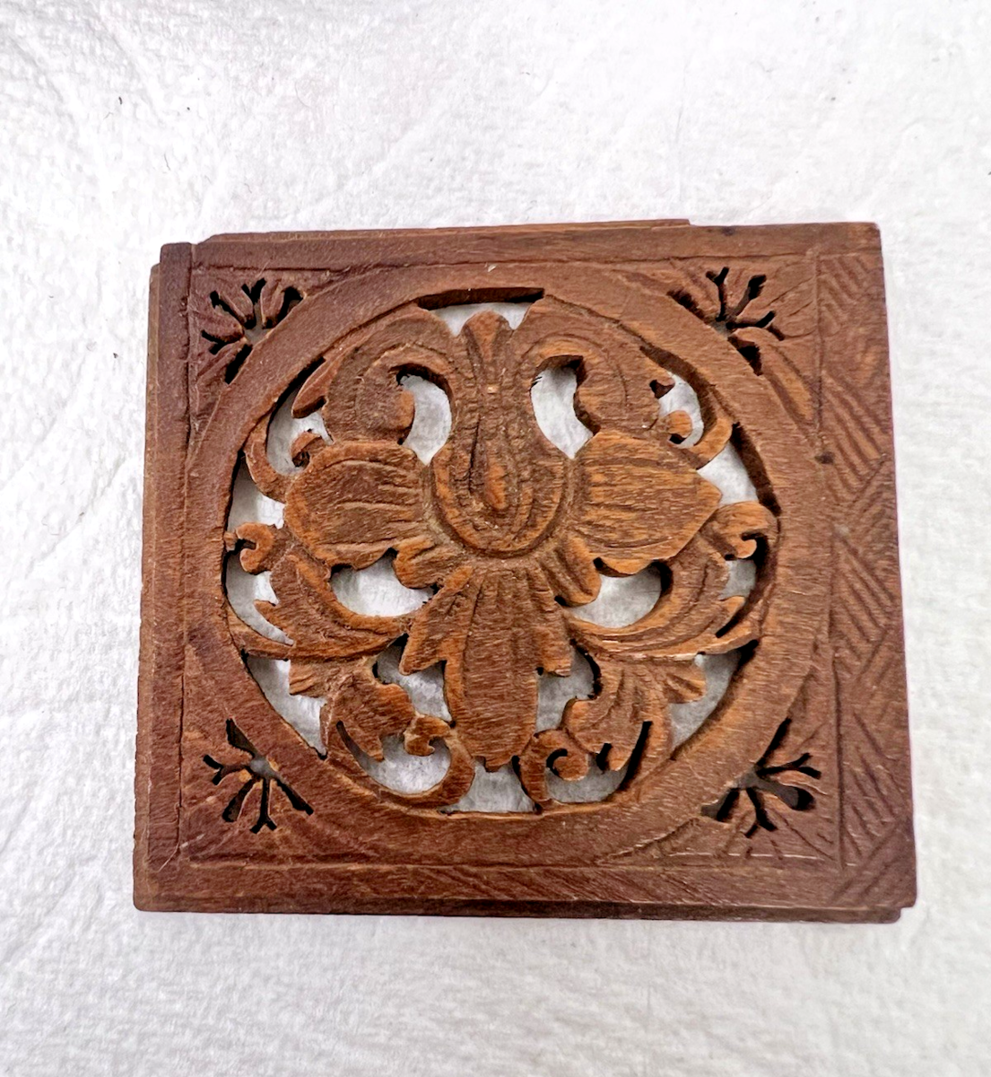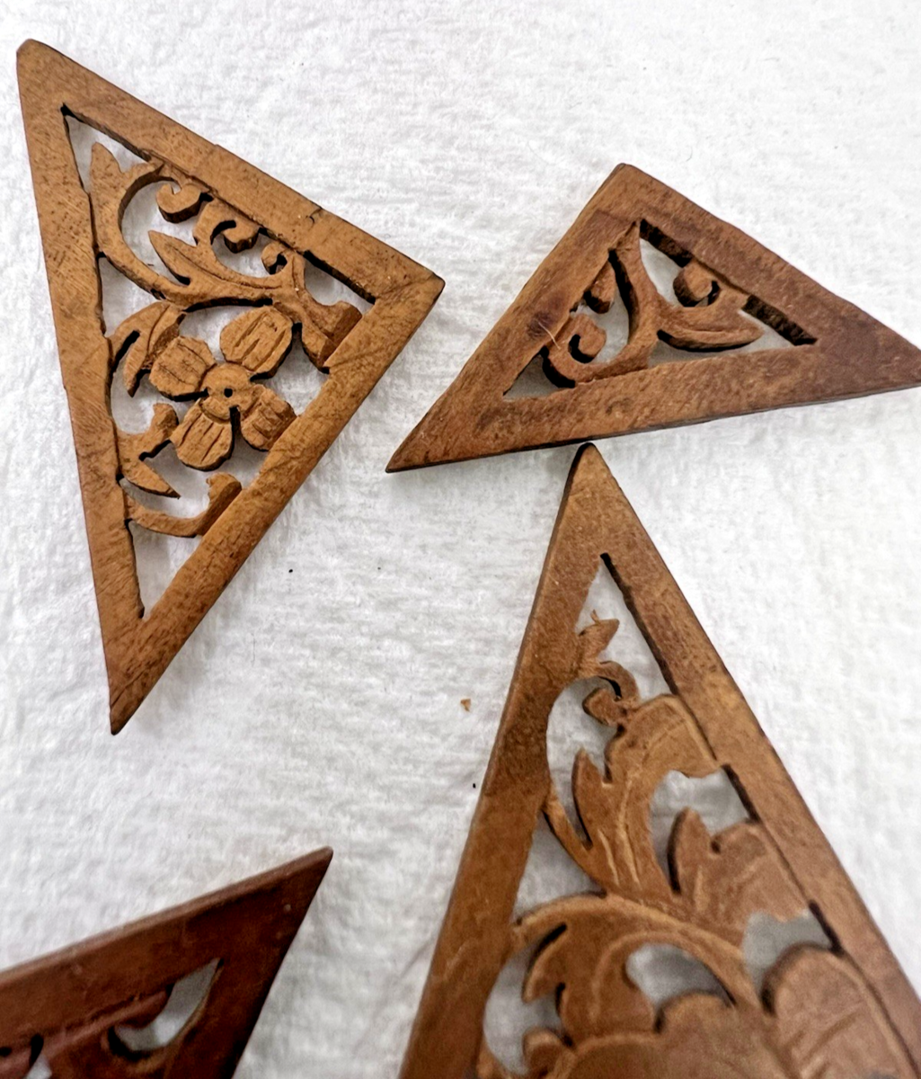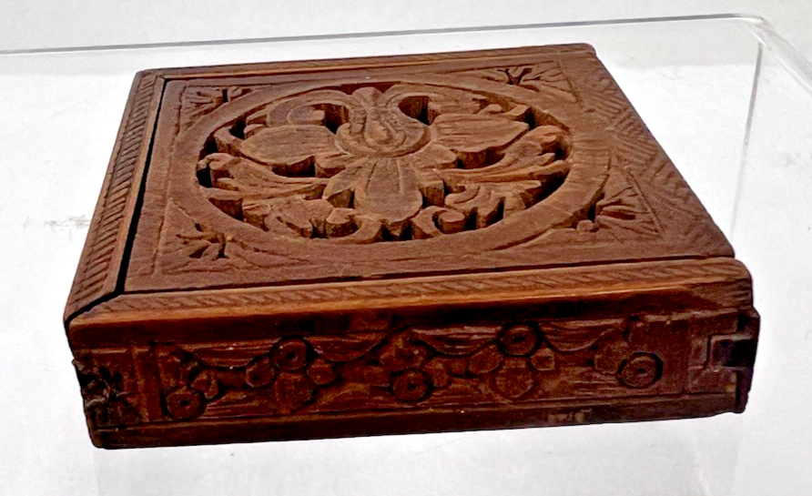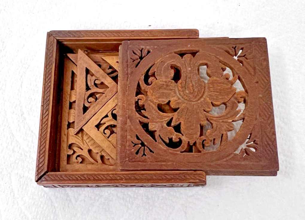 Antique Wood Puzzle in Box Open Fretwork Floral Victorian Design Miniature