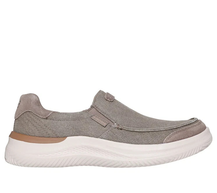 The SKECHERS Hasting-Vigo 205366 Taupe Relaxed Fit Sneaker Shoe is a stylish and comfortable footwear option for men WIDE width EEE.