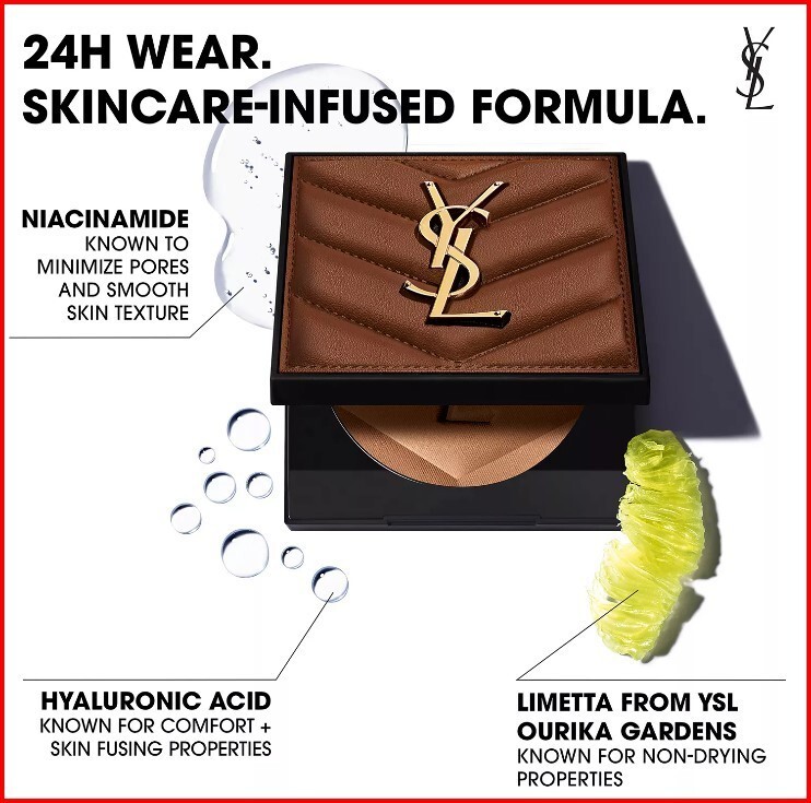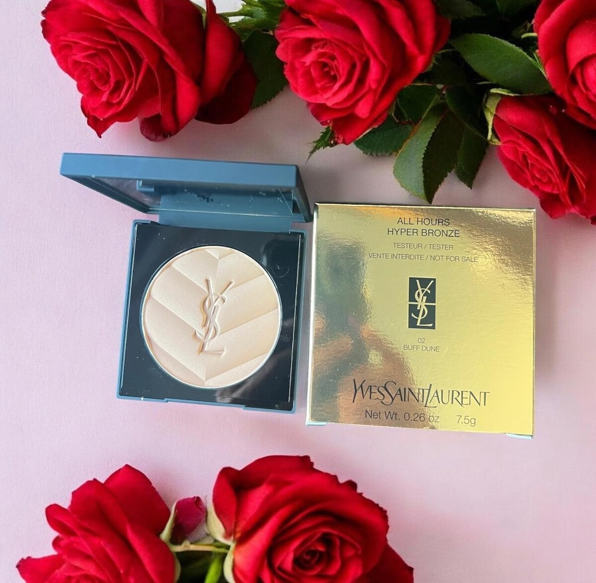 The first bronzer in an Yves Saint Laurent couture clutch. This silky soft bronzer with subtle shimmer leaves your skin with a 24-hour healthy, sun-kissed glow. Available in five skin-adaptable shades with a powder formulation and a soft-matte finish.