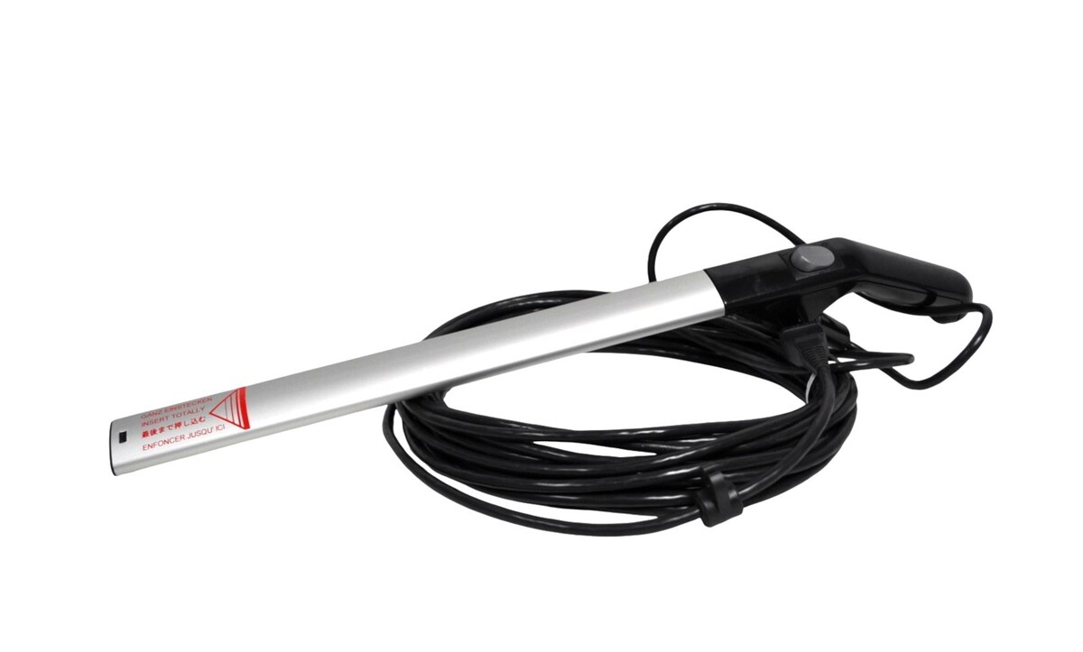 Metal vacuum handle assembly with tube, power switch, and power cord with cord strain relief and cord retainer grip.