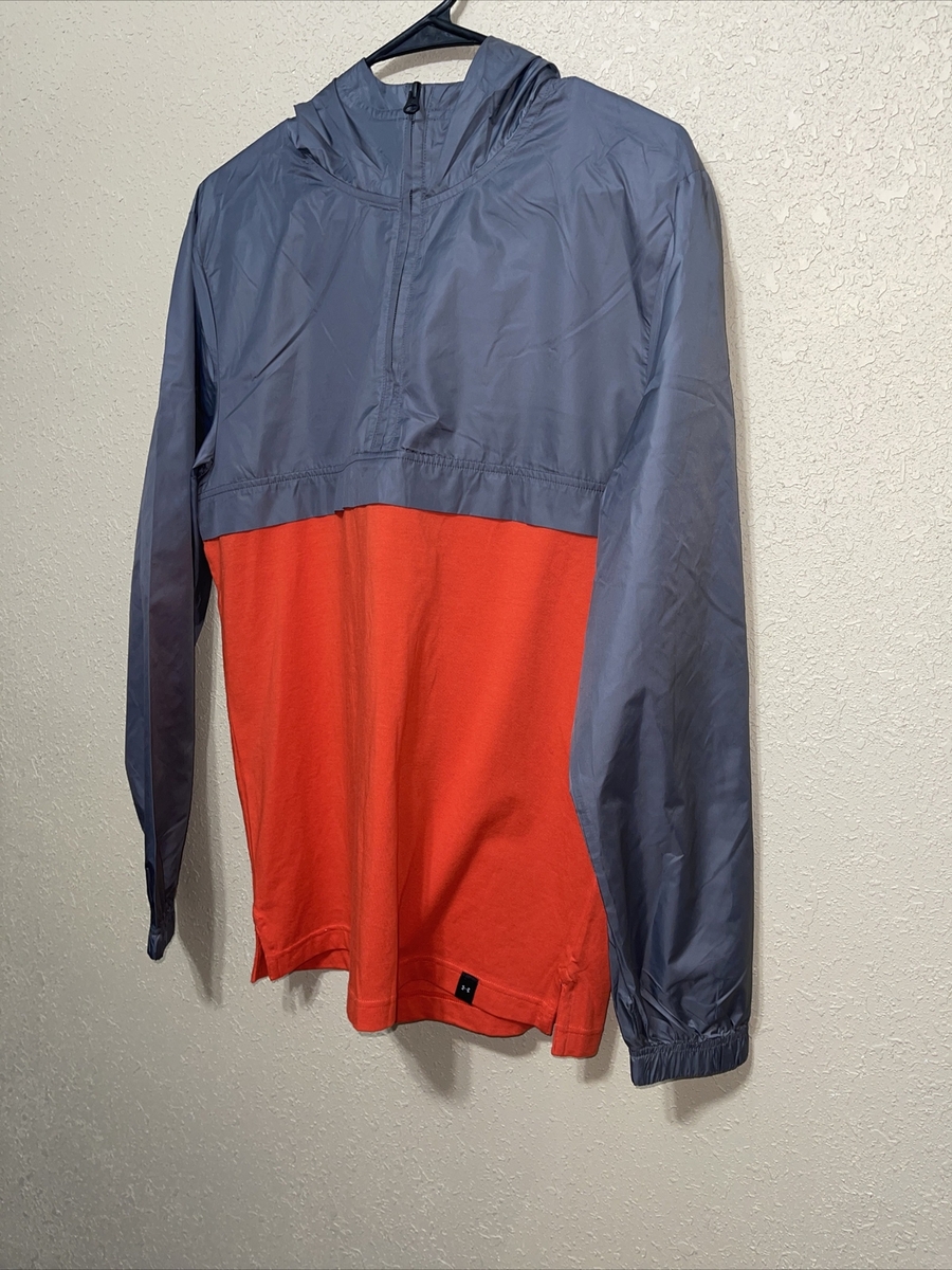 Under Armour Men's Large Hooded Jacket 1/3 Zip Windbreaker Grey ORANGE SZ S NEW