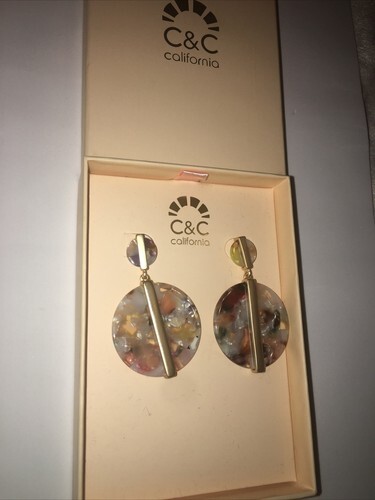 C&C California Resin Tortoiseshell Faux Mother of Pearl Statement Earrings new