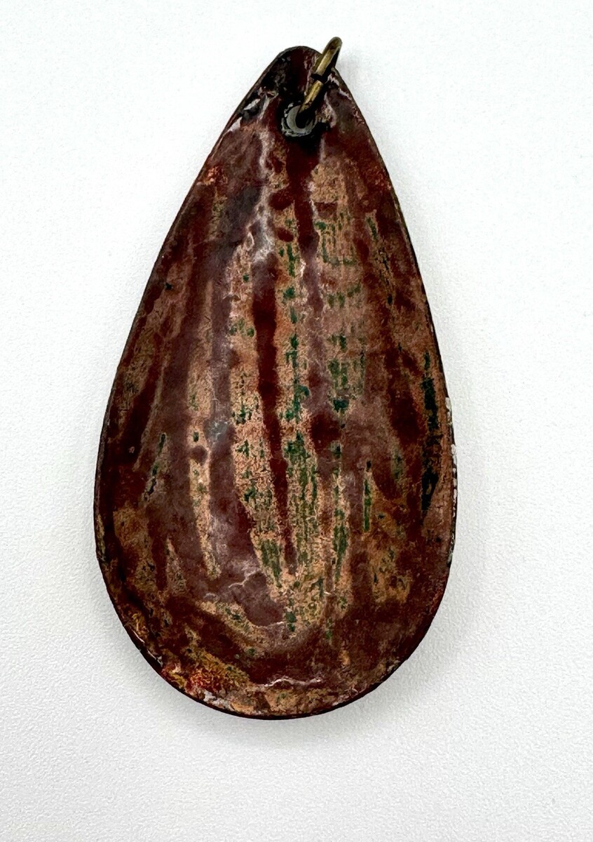 Hand Painted Pendant Teardrop Flowers 2.5" Metal Artisan Floral Vintage Large