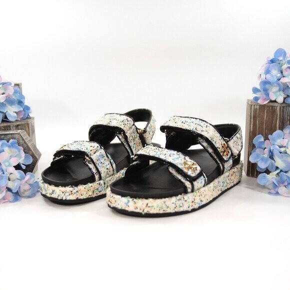 Tory Burch Kira Multi Iridescent Sequins Sport Sandals Flats 7 NIB