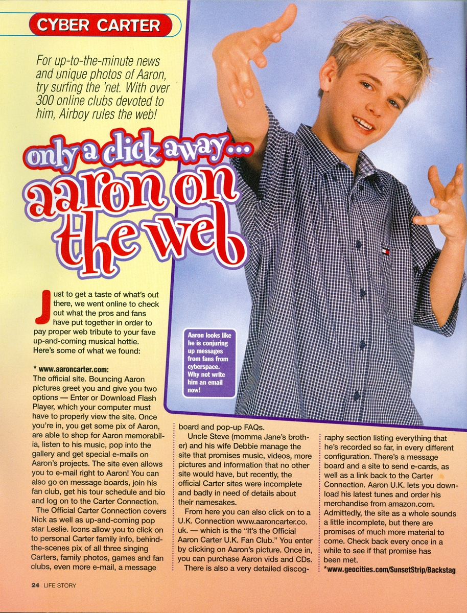 Aaron Carter - singer - 11" x 8" Teen Magazine Pinup Mini Poster Clipping 41