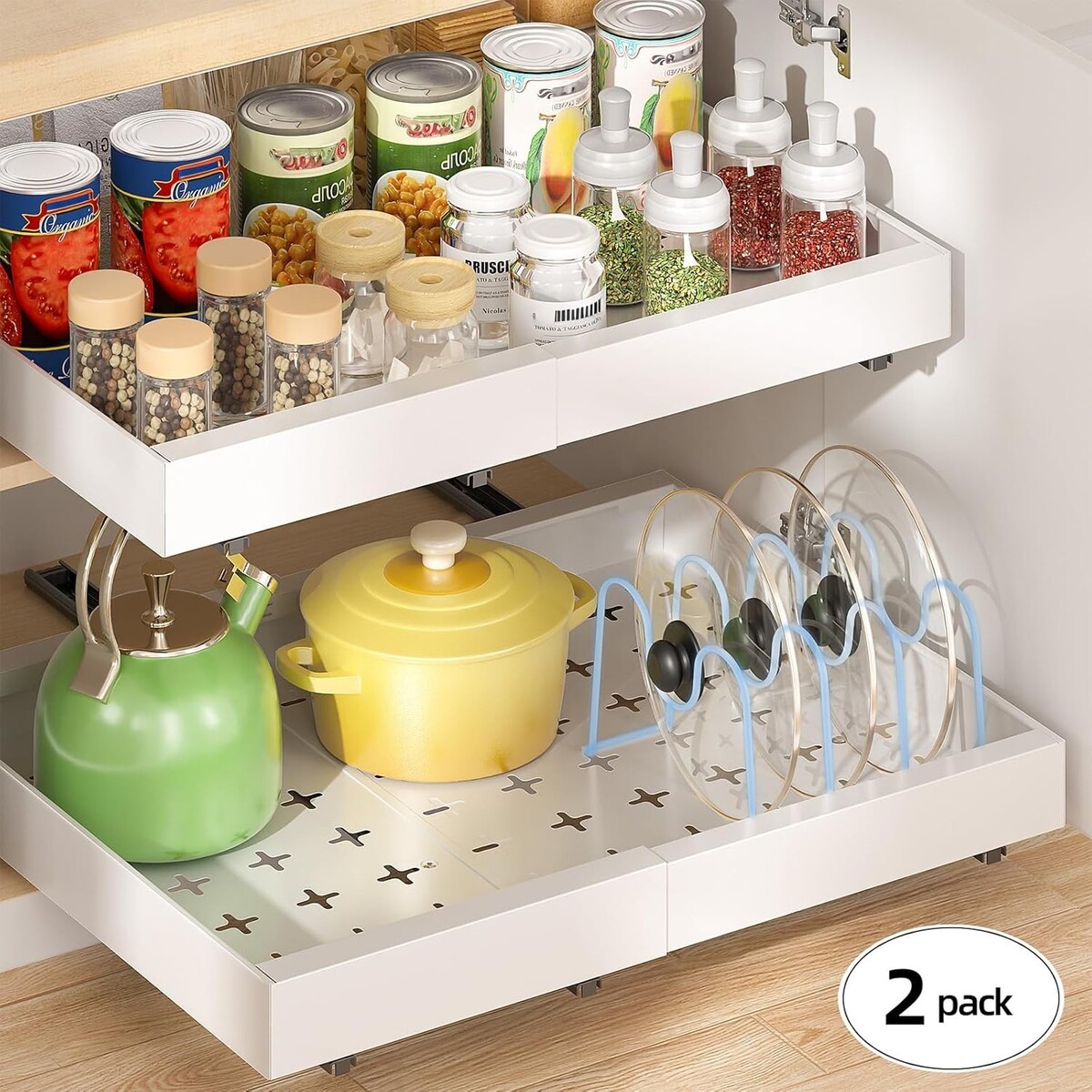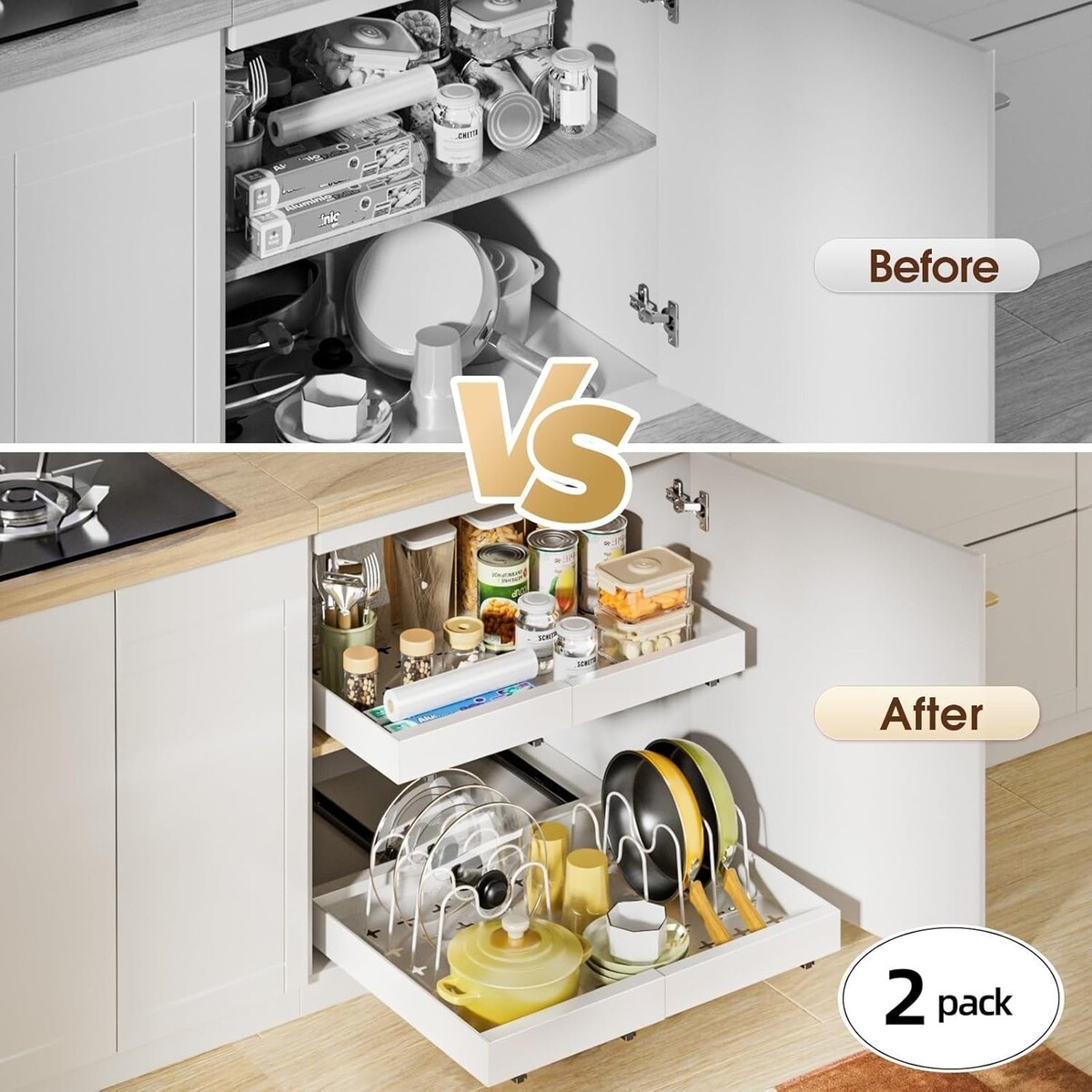 Customizable Organization: Equipped with 6 adjustable dividers, allowing you to flexibly arrange your kitchen essentials - from lids and pans to cutting boards and plates - with ease and precision.