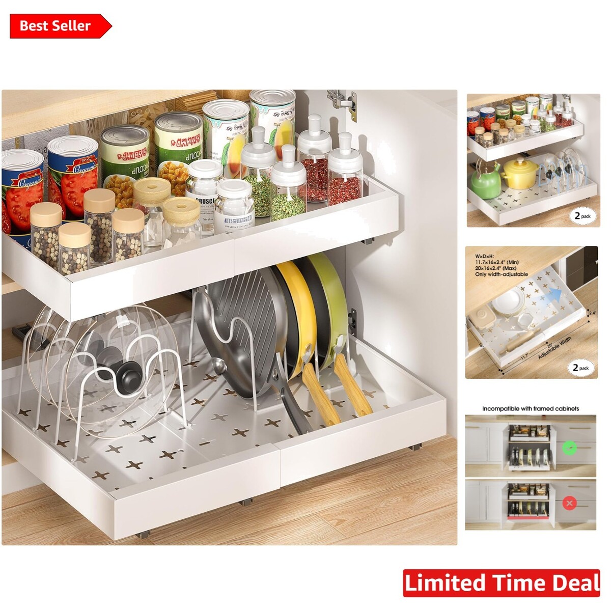 Transform your kitchen into an organized haven with our sleek 16" Deep Drawer Organizer. This versatile pull-out drawer system is designed for seamless functionality and elegance, ensuring your kitchen essentials are always within . Perfectly crafted to complement your cabinetry, it combines practicality with style.
