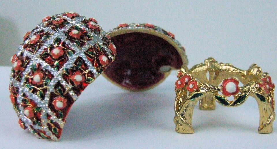 Russian Faberge Egg Replica With Cross Hatch Flowers E06-27-05- show original...