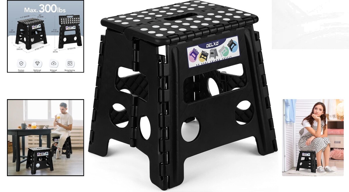 Lightweight 300 lbs Foldable Step Stool with Carry Handle - Safety & Portability